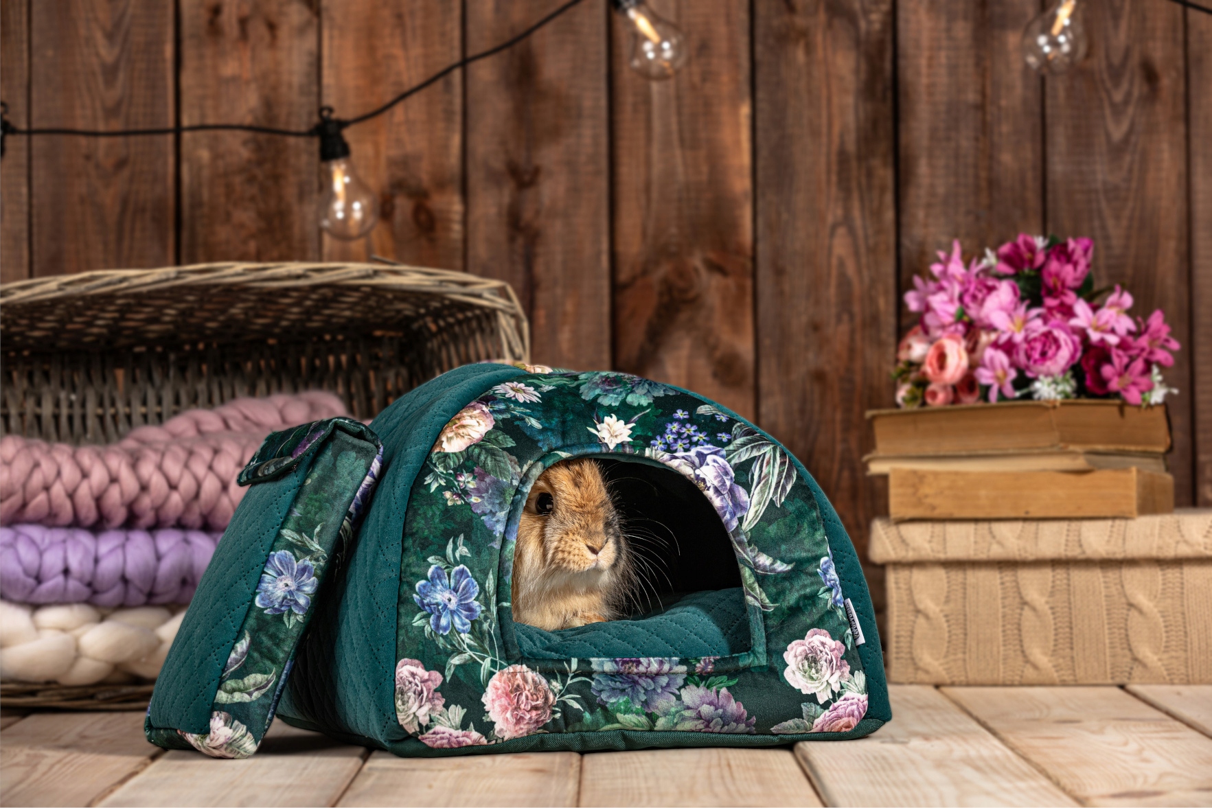 Атмосферний, привабливий принт був розміщений на надзвичайно оксамитовій оббивній тканині Velvet. Тисячі мікрошерстинок, з яких він складається, забезпечать вашим улюбленцям найвищий рівень відпочинку. Крім того, цей матеріал повітропроникний, добре переносить контакт з кігтями, не лізе і не вицвітає на сонці. У нижній частині капюшона ми помістили гладкий поліестер, який стійкий до будь-яких умов, і чистка якого займе у вас лише хвилину. Іншими словами - це не тільки зручна, але і довговічна лежанка для гризунів і їжаків.