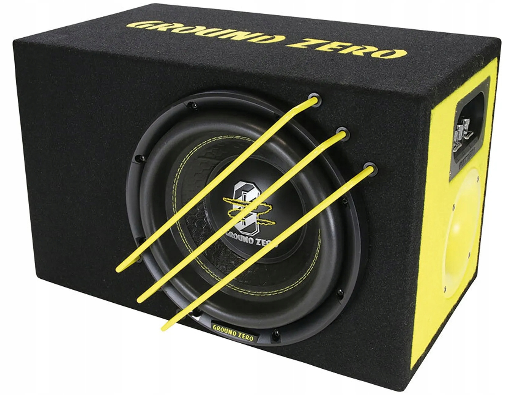 Zero Zero GZRB 25SPL-BASS BOX з бас-рефлексом, оснащеним 10-дюймовим сабвуфером / 25 см. 500 Вт RMS/1000W SPL. Забезпечує багаті, низькі частоти з високою ефективністю. Суцільна конструкція та конструкція, оптимізована для SPL, роблять його ідеальним вибором для всіх, хто шукає сильне басове рішення для своєї аудіосистеми автомобіля.