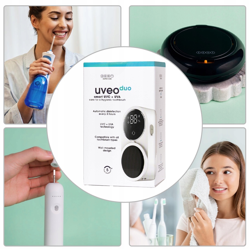 Zent Uveo Duo - це вдосконалена УФ -ручка для пензля, яка забезпечує ідеальну гігієну щодня. Оснащений технологією UVC + UVA, видаляє до 99,9% бактерій та вірусів, піклуючись про здоров'я вашої родини.