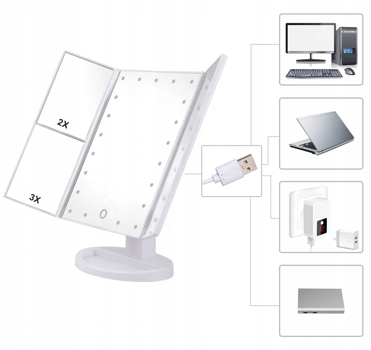 ЗЕРКАЛО LED 22LED КОСМЕТИЧНЕ ЗБІЛЬШУВАННЯ 3Х