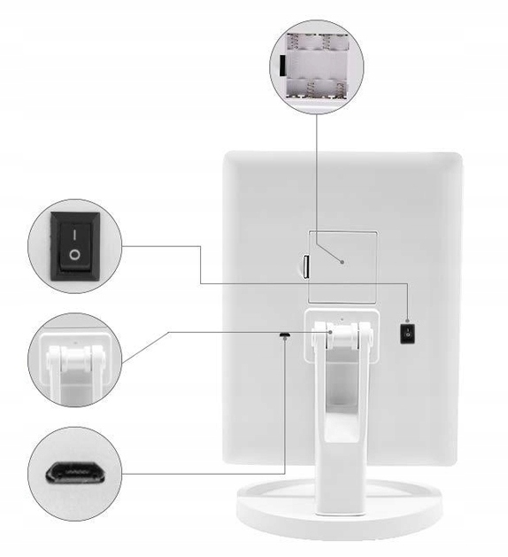 Дзеркало має широку та міцну основу для забезпечення стабільності та надійності використання. Додатково в підставці є практична ніша для дрібниць, необхідних для макіяжу.