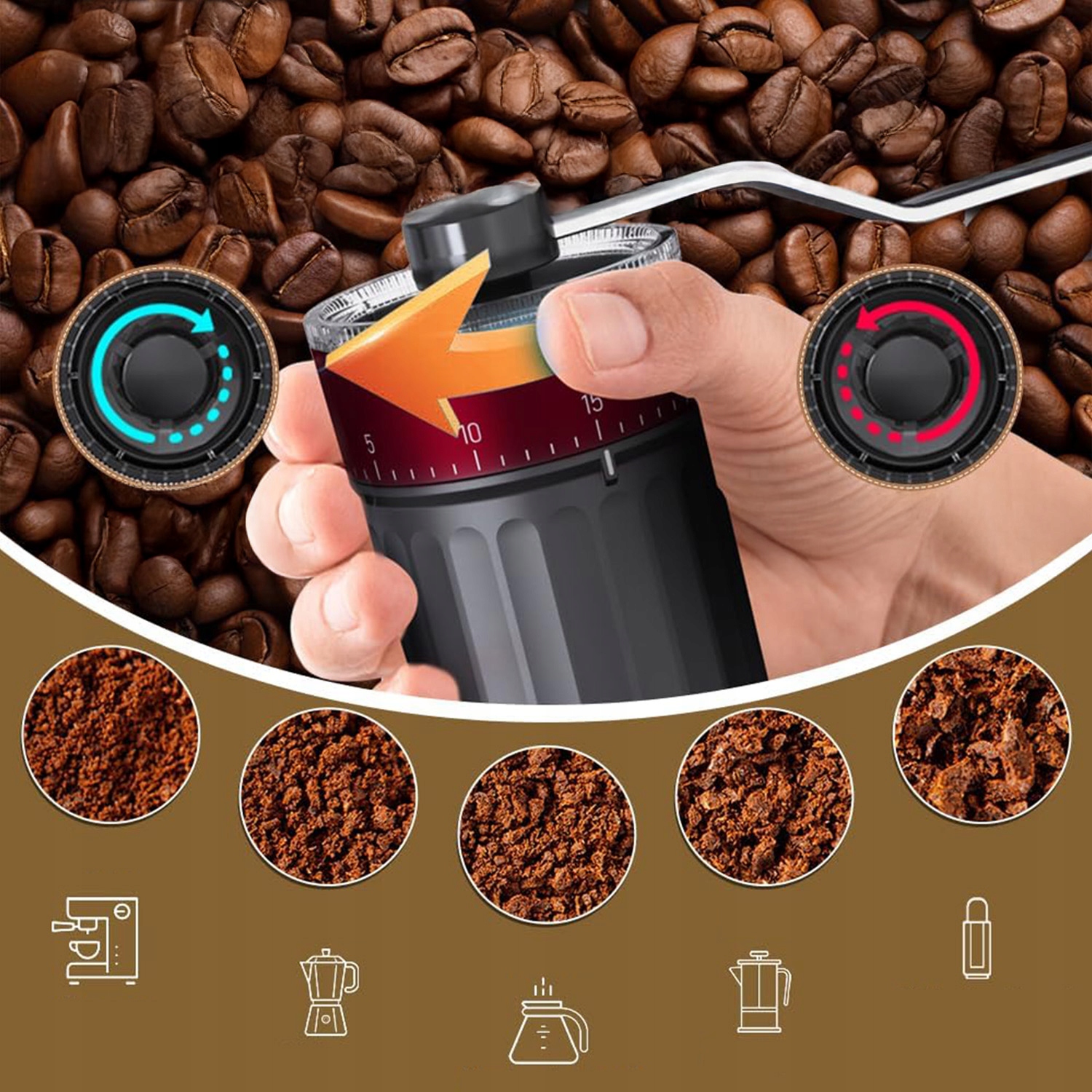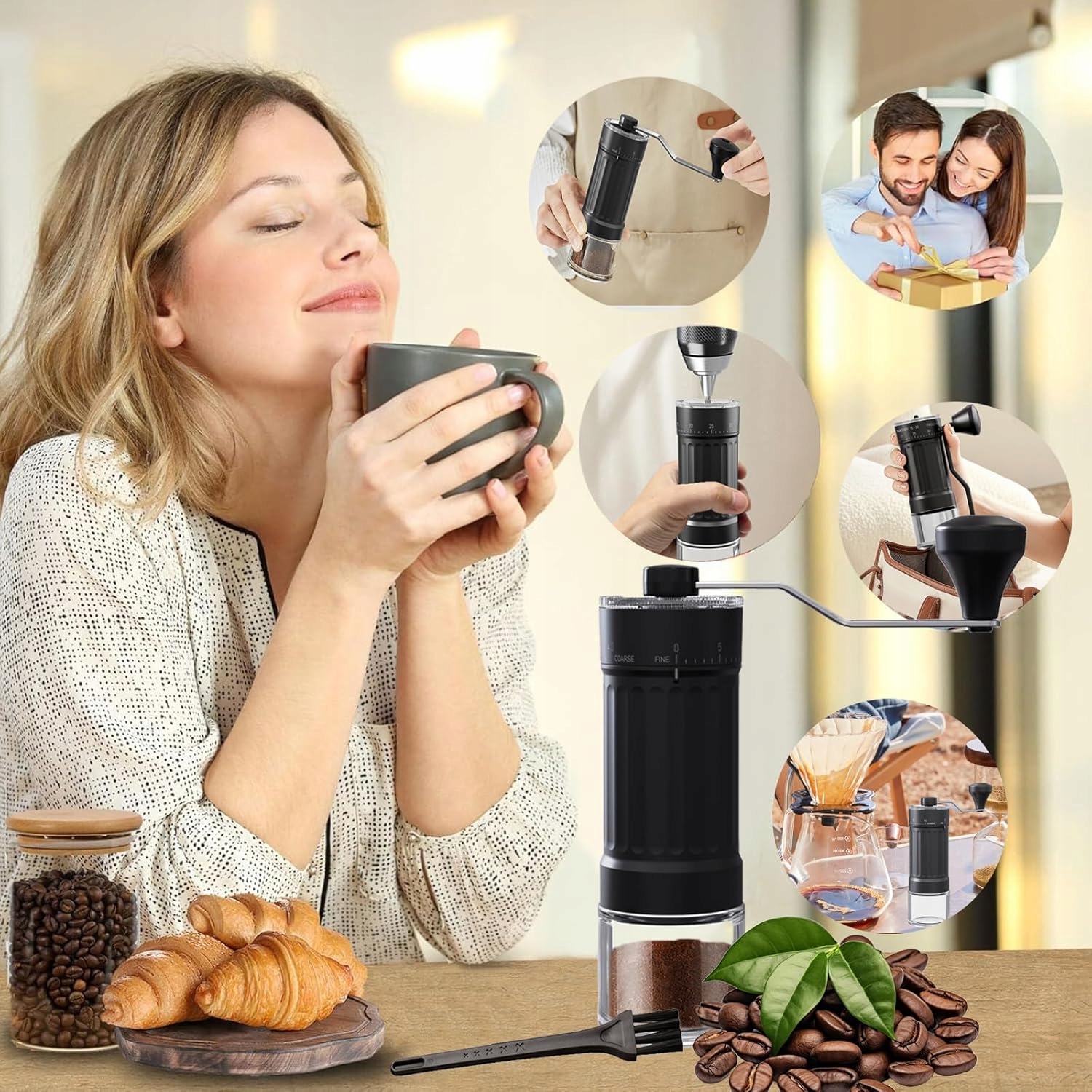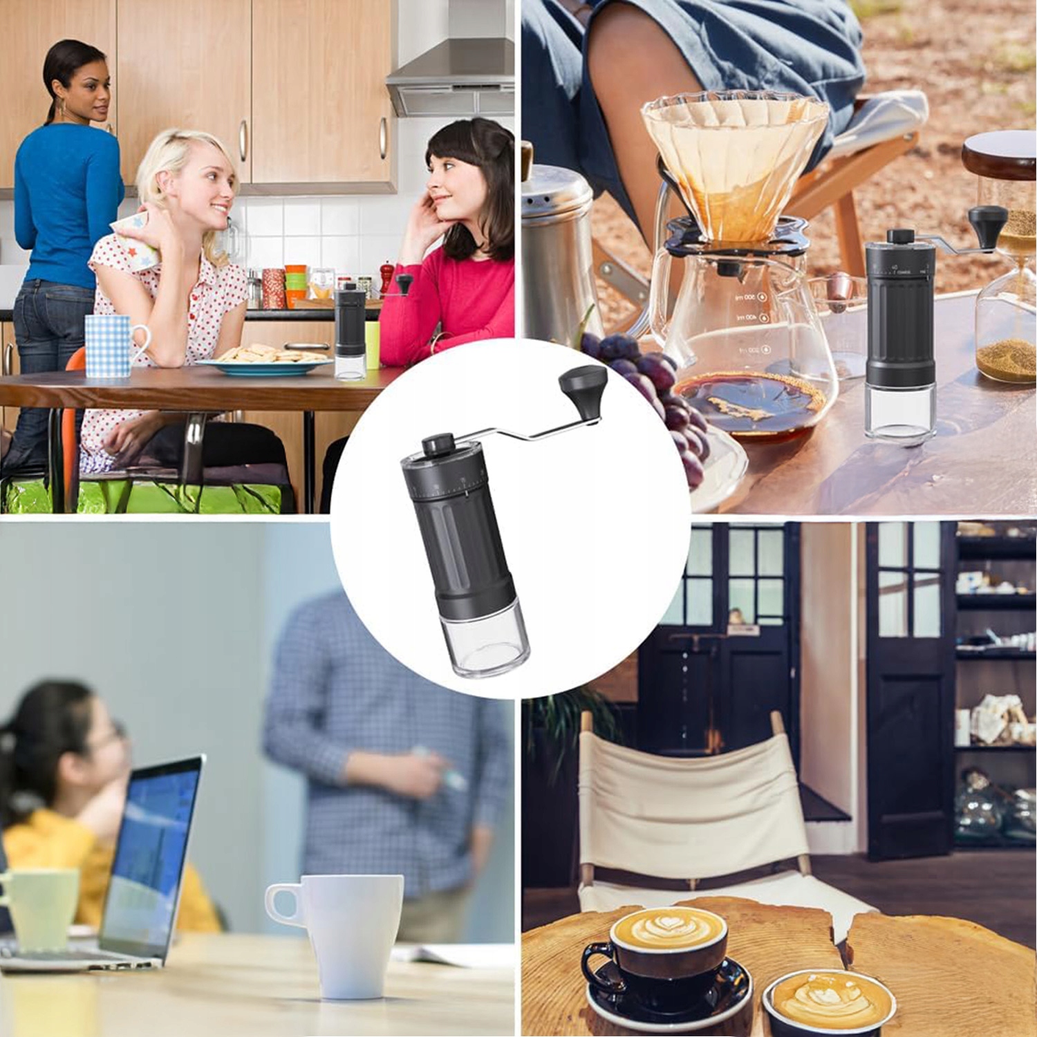 Ця ручна кавова шліфувальна машина є ідеальним супутником подорожей. Будь то в кемпінгу, в дорозі, в офісі чи на терасі, насолоджуйтесь свіжою меленою кавою, де б ви не були.
