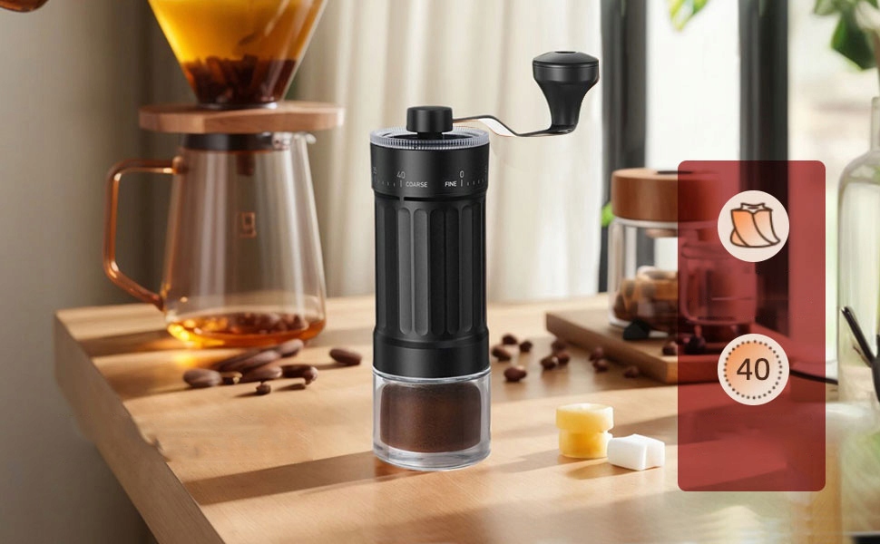 Відкрийте незрівнянні можливості персоналізації завдяки нашій ручній кавовій, яка пропонує 40 зовнішніх налаштувань шліфування для вдосконалення будь -якого методу пивоваріння. Незалежно від того, чи це еспресо, передача, французька преса чи інші методи пивоваріння - ви можете легко відрегулювати рівень шліфування інтуїтивно зрозумілим кільцем регулювання. Попрощайтеся з розкиданими слідами кавових зерен і насолоджуватися чистим, точним шліфуванням, забезпечуючи ідеальний аромат кави щоразу. Засуть повний потенціал ваших кавових зерен легко!