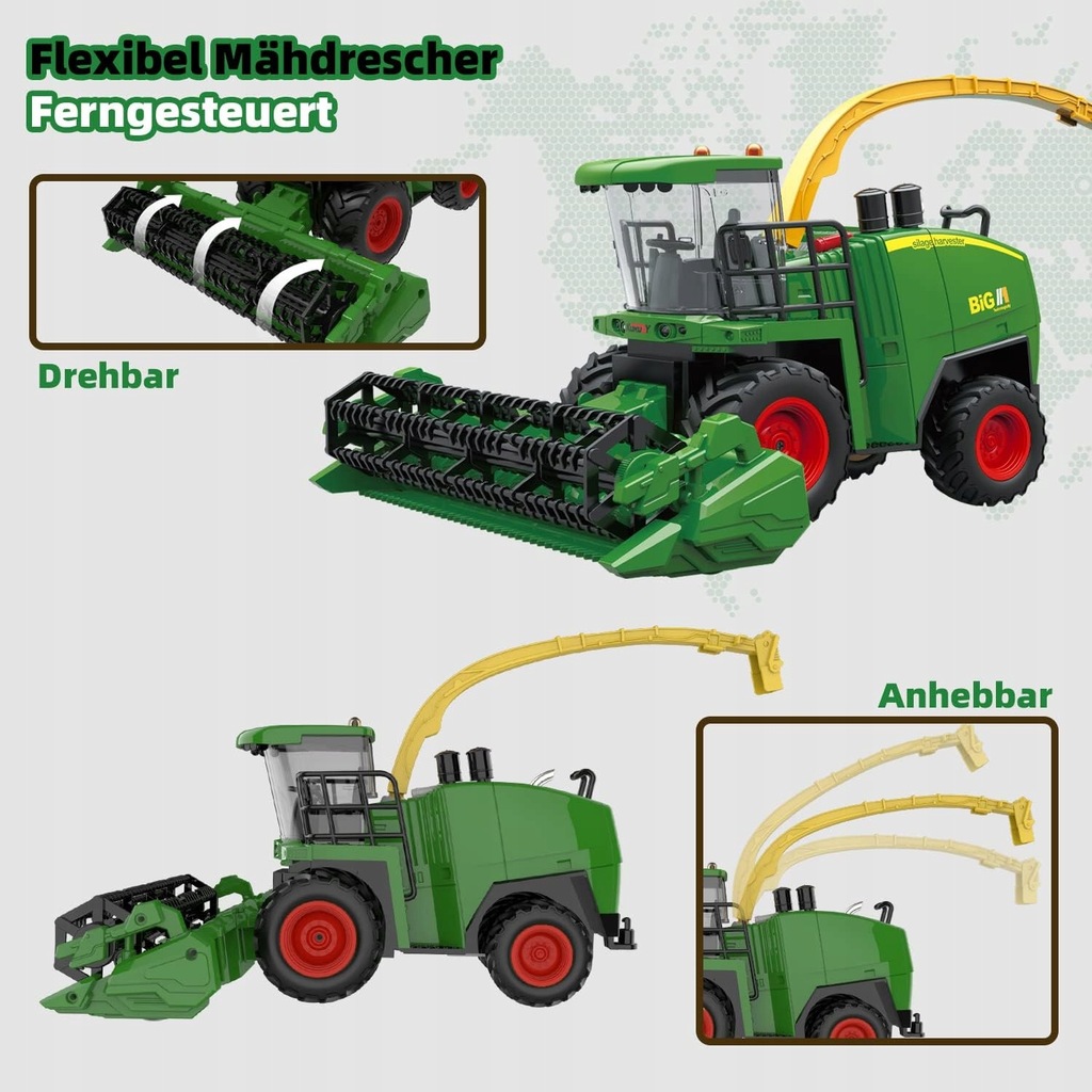 ⭐ Комбайн має масштаб 1:24, що робить його достатньо великим для зручної гри. Його реалістичний вигляд і можливість рухатися вперед, назад, праворуч і ліворуч дозволять дітям відчути реальність сільського господарства.