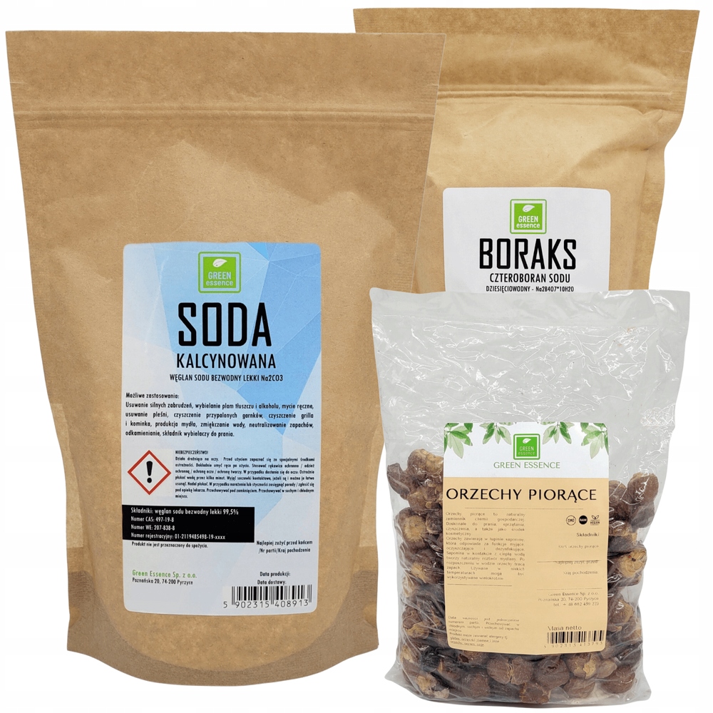 Набір для прання - мильні горіхи 500 г + бура 1 кг і кальцинована сода 1 кг Zero Waste GREEN ESSENCE