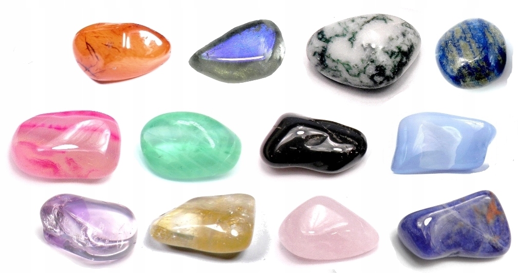Zestaw, Kolekcja Naturalnych Kamieni i Minerałów 12 szt. + Prawdziwe Srebro