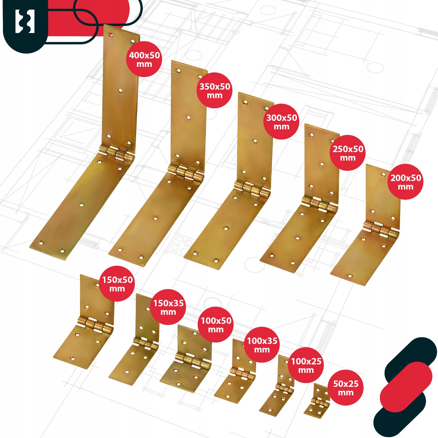 ZESTAW 10X ZAWIAS PASOWY BUDOWLANY SPLATANY SKRZYNIOWY 100x35 MM DO SKRZYŃ