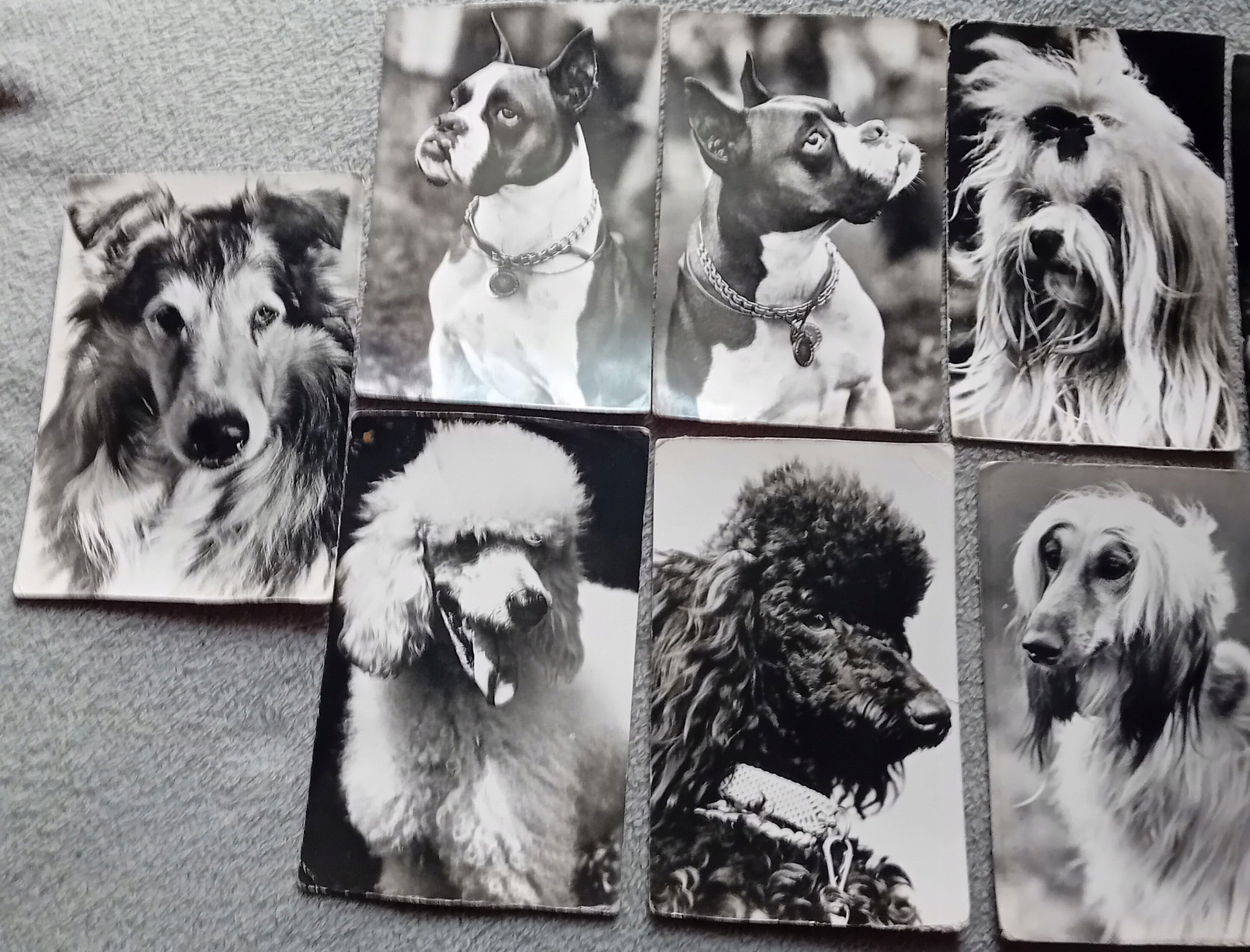 Zestaw 11 pocztówek - Rasy psów. Przełom lat 60-ych i 70-ych.