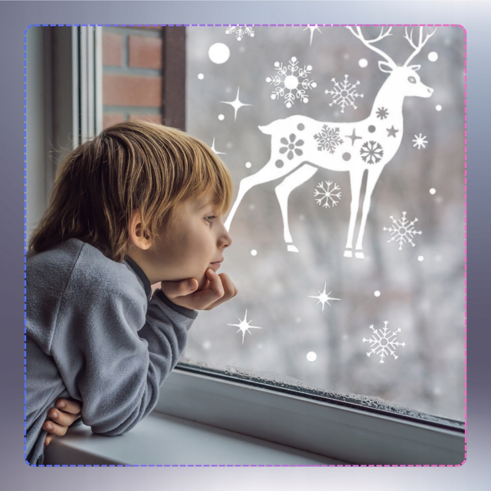 Zestaw 2 arkuszy naklejek renifer na okno szybę świąteczne naklejki ozdoby