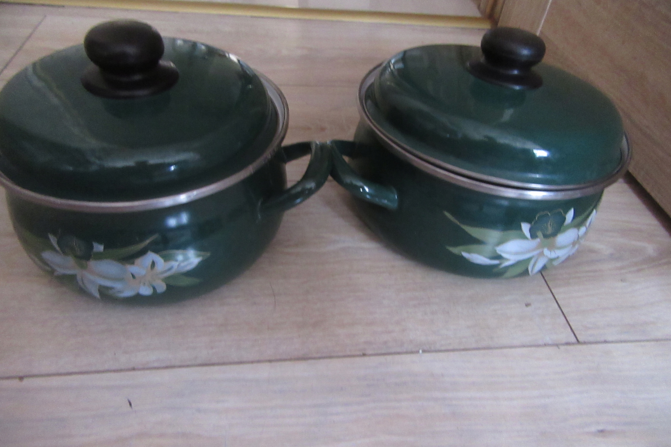 У ПРОДАЖУ 2 КАСТРУШКИ З КРИШКОЮ, ОДИН БЛИЗЬКО 3 Л, А ДРУГИЙ 2 Л