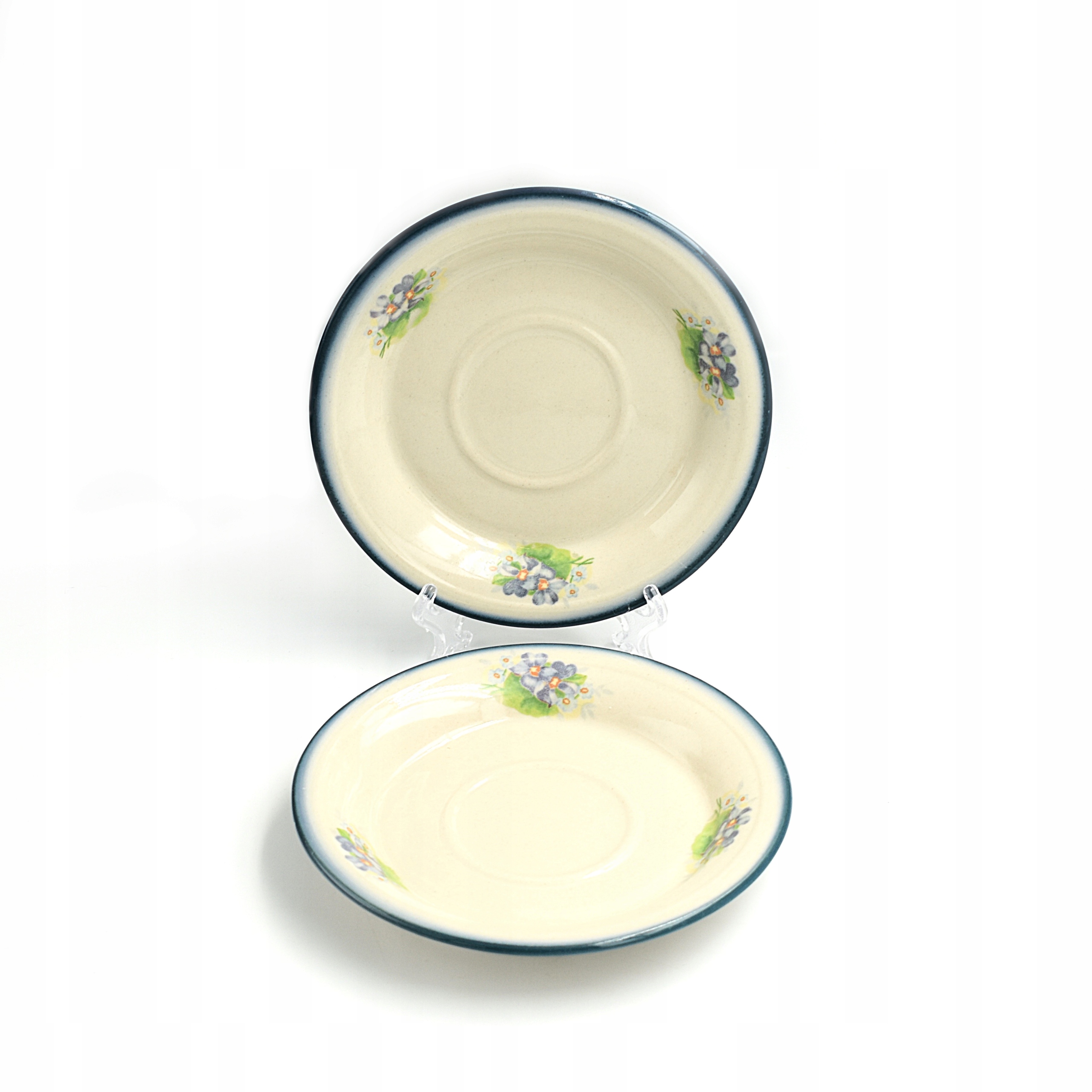 Zestaw 2 talerzyki podstawki Tułowice PRL ceramika kremowe kwiaty vintage