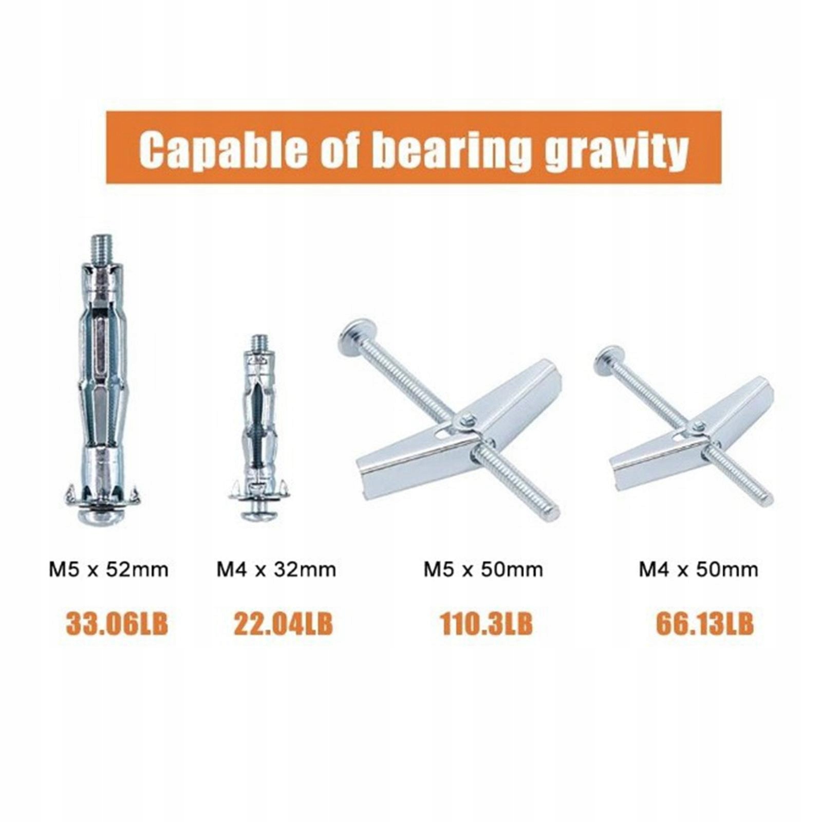 [Комплексний набір]: цей пакет включає 25 комплектів гвинтів і болтів із перекидним кріпленням, які пропонують різні набори міцних настінних анкерів.