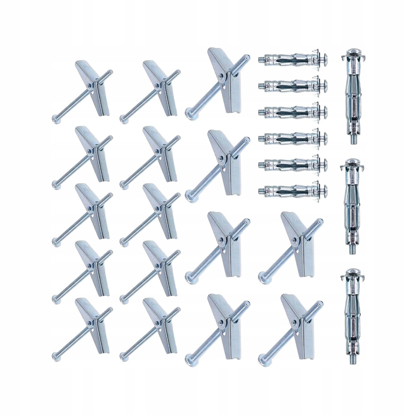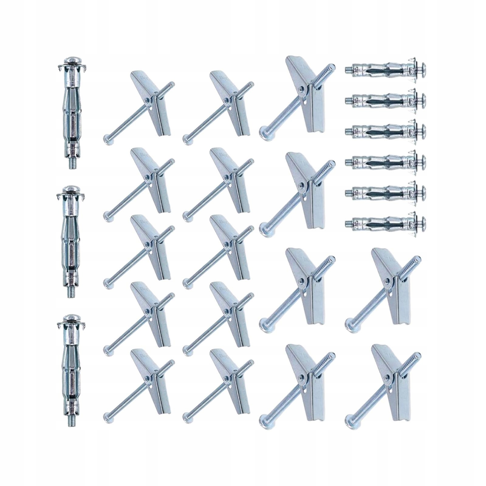 Zestaw 25 sztuk śrub przegubowych i nakrętek motylkowych. Różne kotwy przegubowe o dużej wytrzymałości