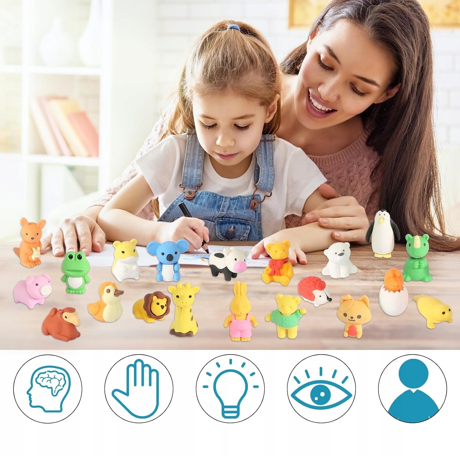 Познайомте свою дитину з захоплюючим світом шкільного приладдя за допомогою нашого набору милих гумок у формі тварин. Ці незвичайні гумки не тільки виконують свою основну функцію, але й є чудовим елементом творчої гри, розвиваючи уяву та ручні здібності дитини.