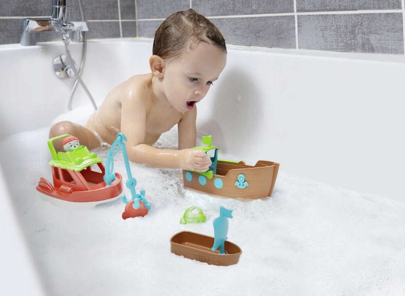 Zestaw 3w1 Kuter Rybacki Klorofil Zabawki Kąpielowe Dla Dzieci Łódeczki 18m