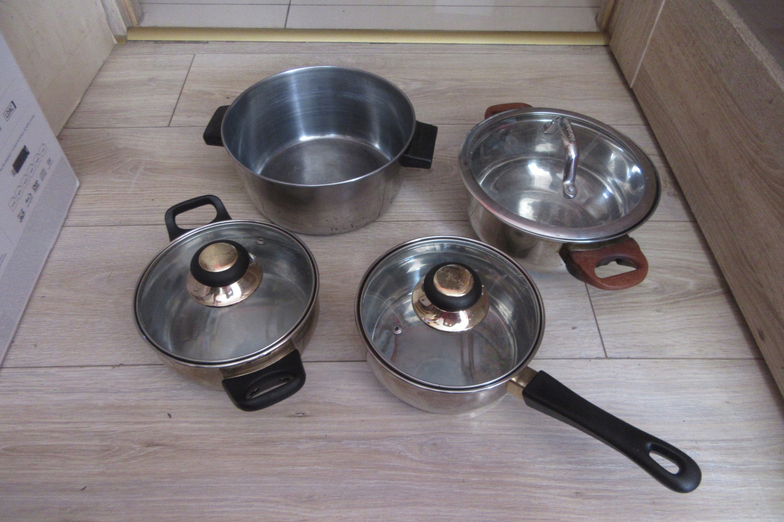 ZESTAW 4 GARNKI RÓŻNE Z POKRYWKAMI