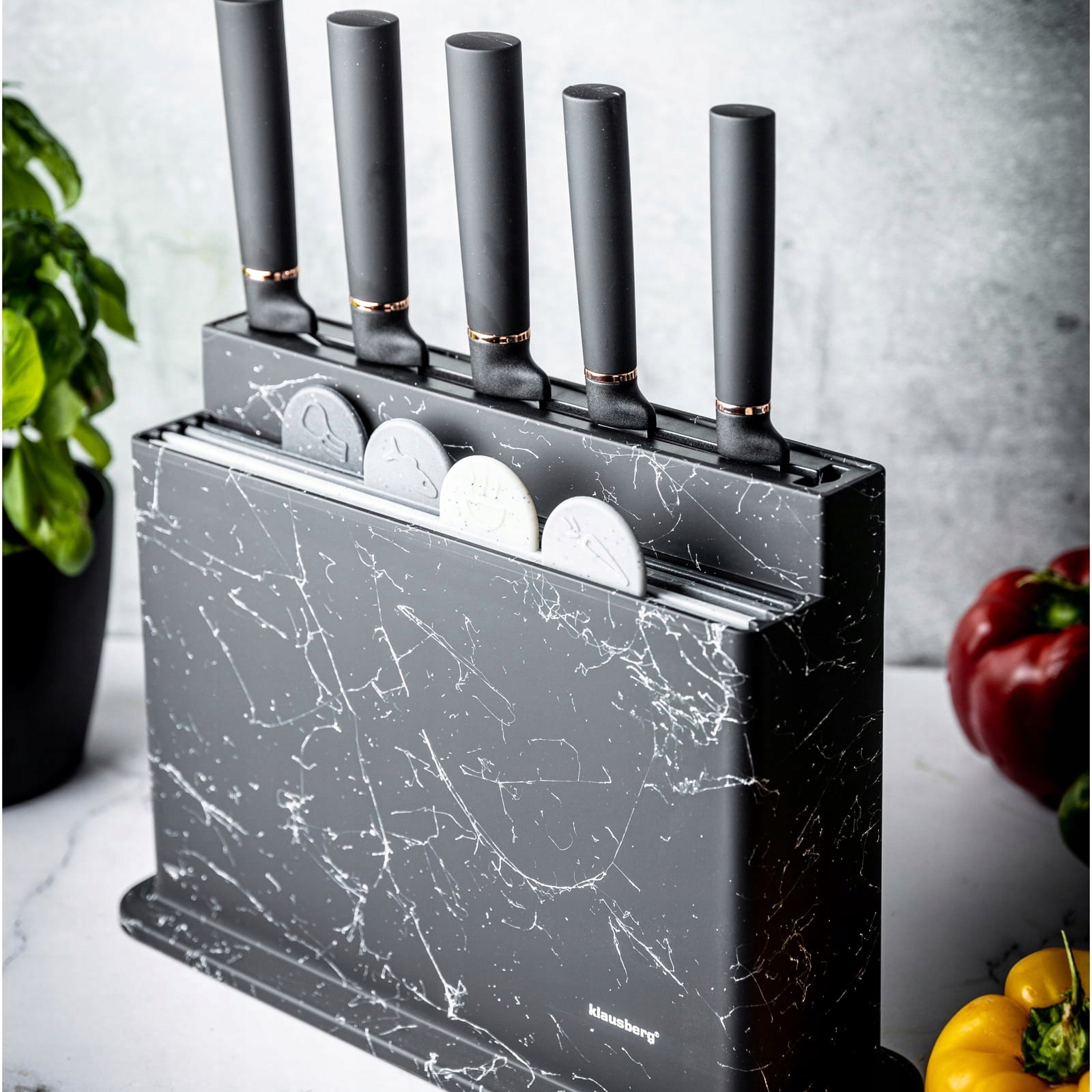 Zestaw 5 noży kuchennych w bloku + 4 deski do krojenia 10 ele. KLAUSBERG