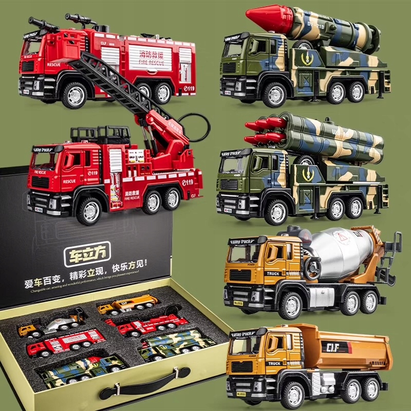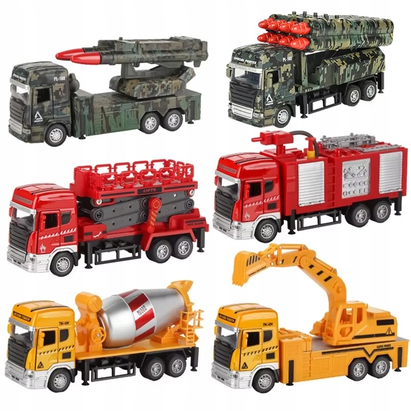 ZESTAW 6 SAMOCHODÓW INTERAKTYWNYCH WOJSKOWYCH BUDOWLANYCH STRAŻ POŻARNA