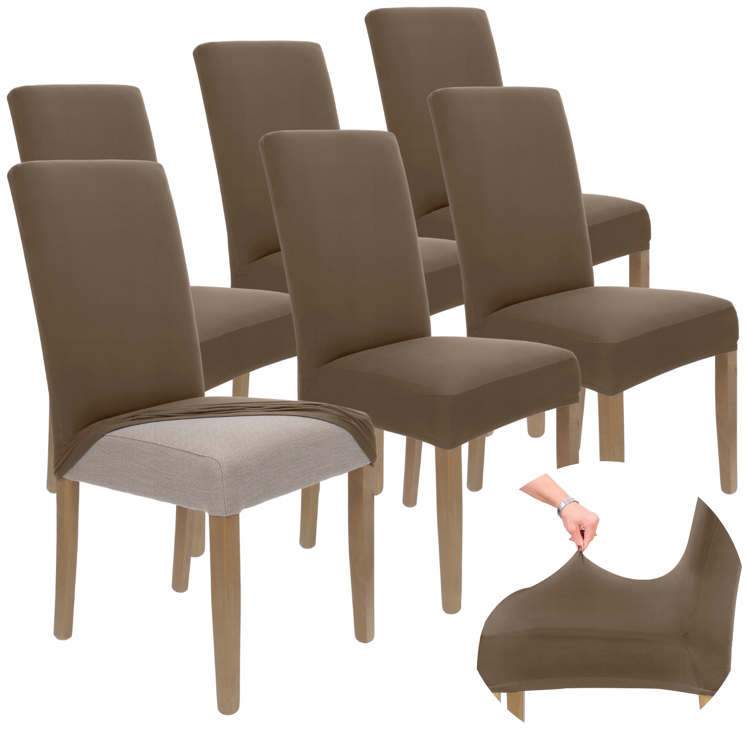 ZESTAW 6 SZT. POKROWCE POKROWIEC NA KRZESŁO KAKAOWY BRĄZ ELASTYCZNY GŁADKI