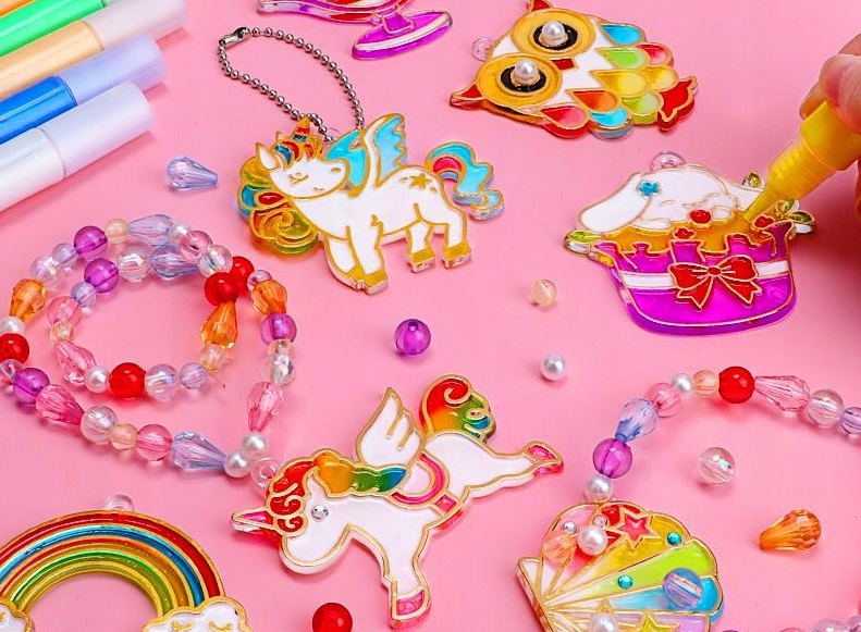 Креативний набір - чудовий подарунок для кожного дитина, яка любить малювати, творити та прикрашати. Набір призначений як для дітей, так і для дорослих і містить усі необхідні елементи для створення чудових підвісок, якими можна прикрасити рюкзак, сумочку або прикріпити до ключів. !
