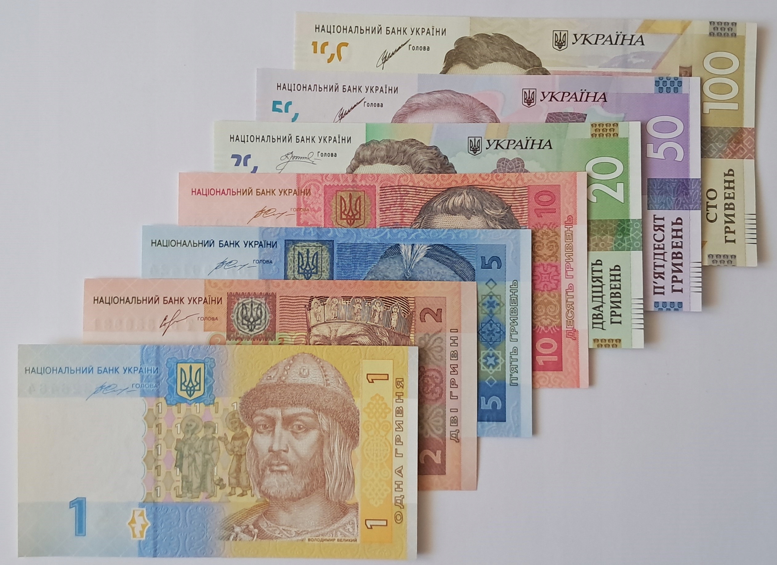 Zestaw Banknotów Ukraina od 1 do 100 Hrywien 2013 - 2023