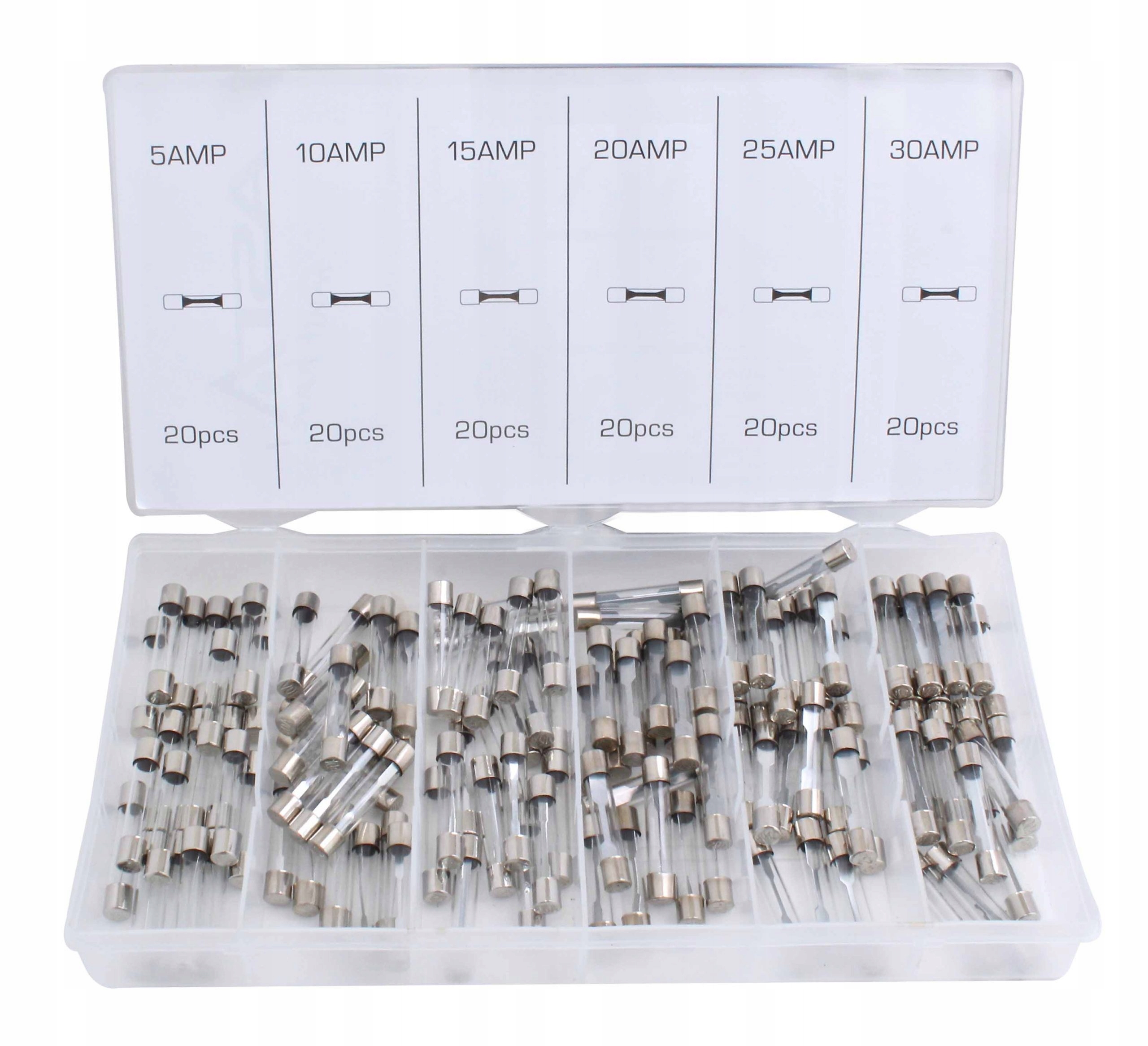 НАБІР СКЛЯНИХ ЗАПОБІЖНИКІВ, довжина 32 мм - набір 120 шт.
