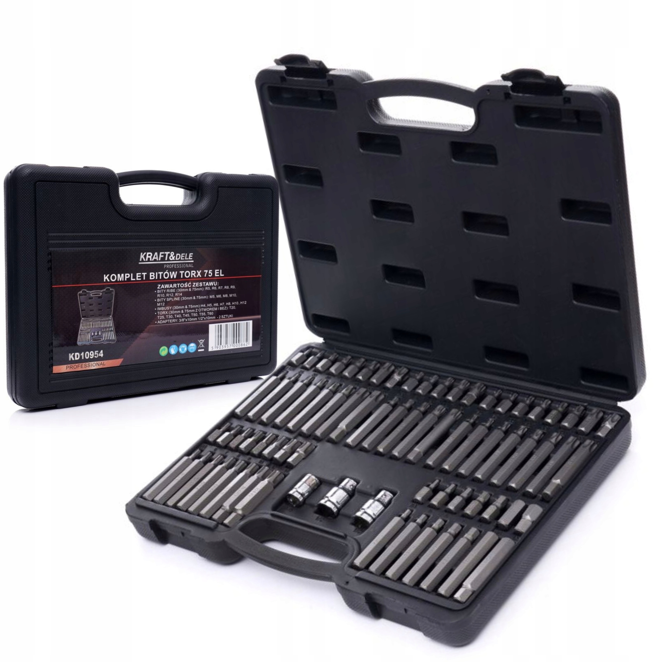 ZESTAW BITÓW KOŃCÓWEK BITY TORX SPLINE IMBUS RIBE WALIZKA KD10954 75 SZTUK