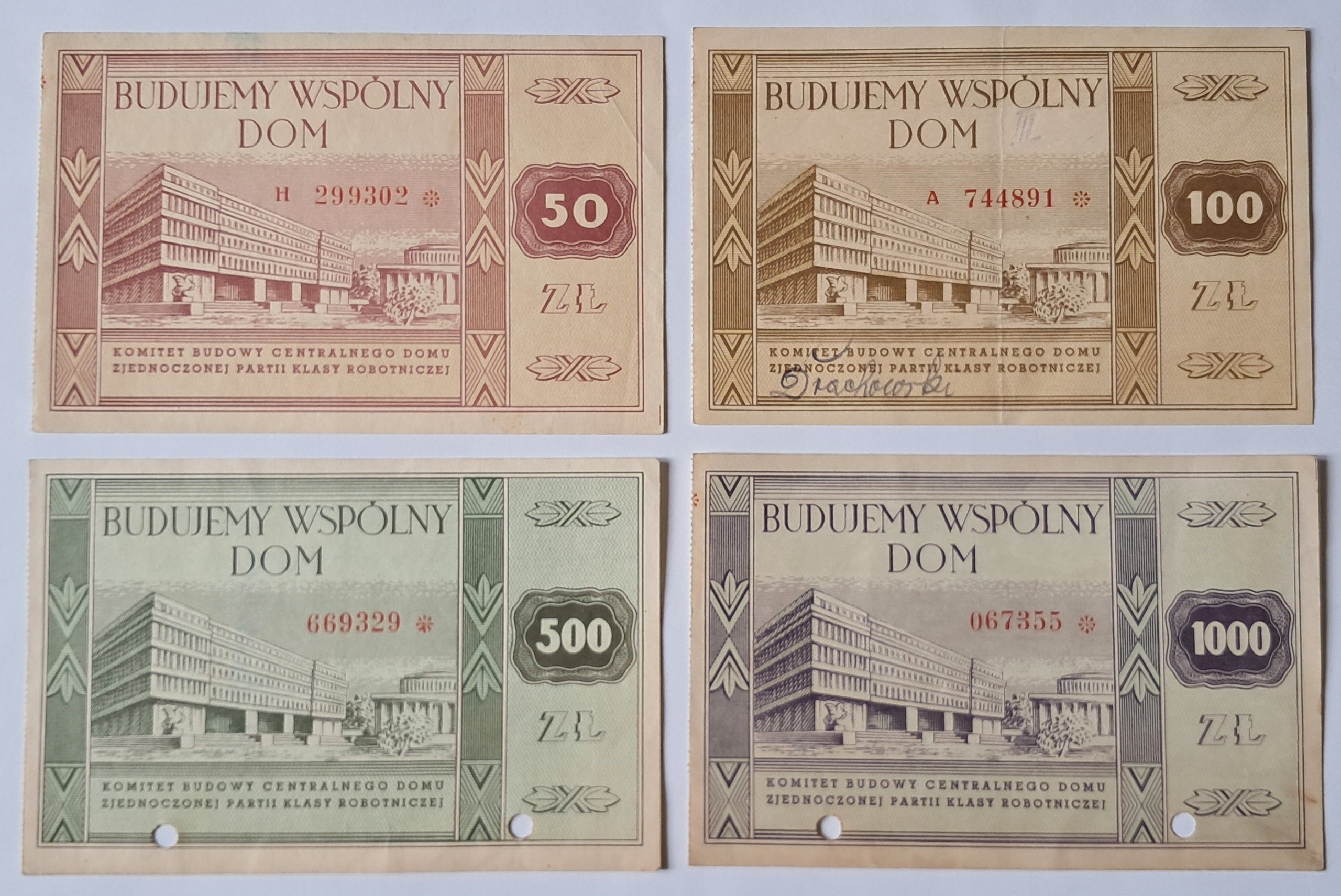 Zestaw Cegiełek Budujemy Wspólny Dom PZPR 50 100 500 1000 zł