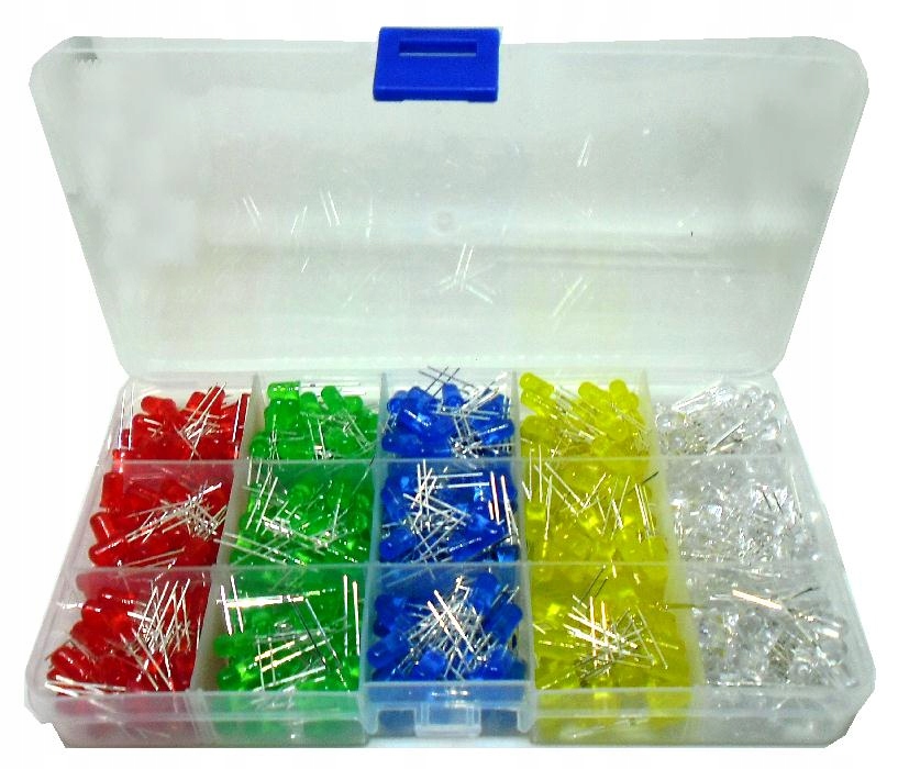 ZESTAW DIODY LED BIAŁE I KOLOROWE DIP 5mm - 500szt