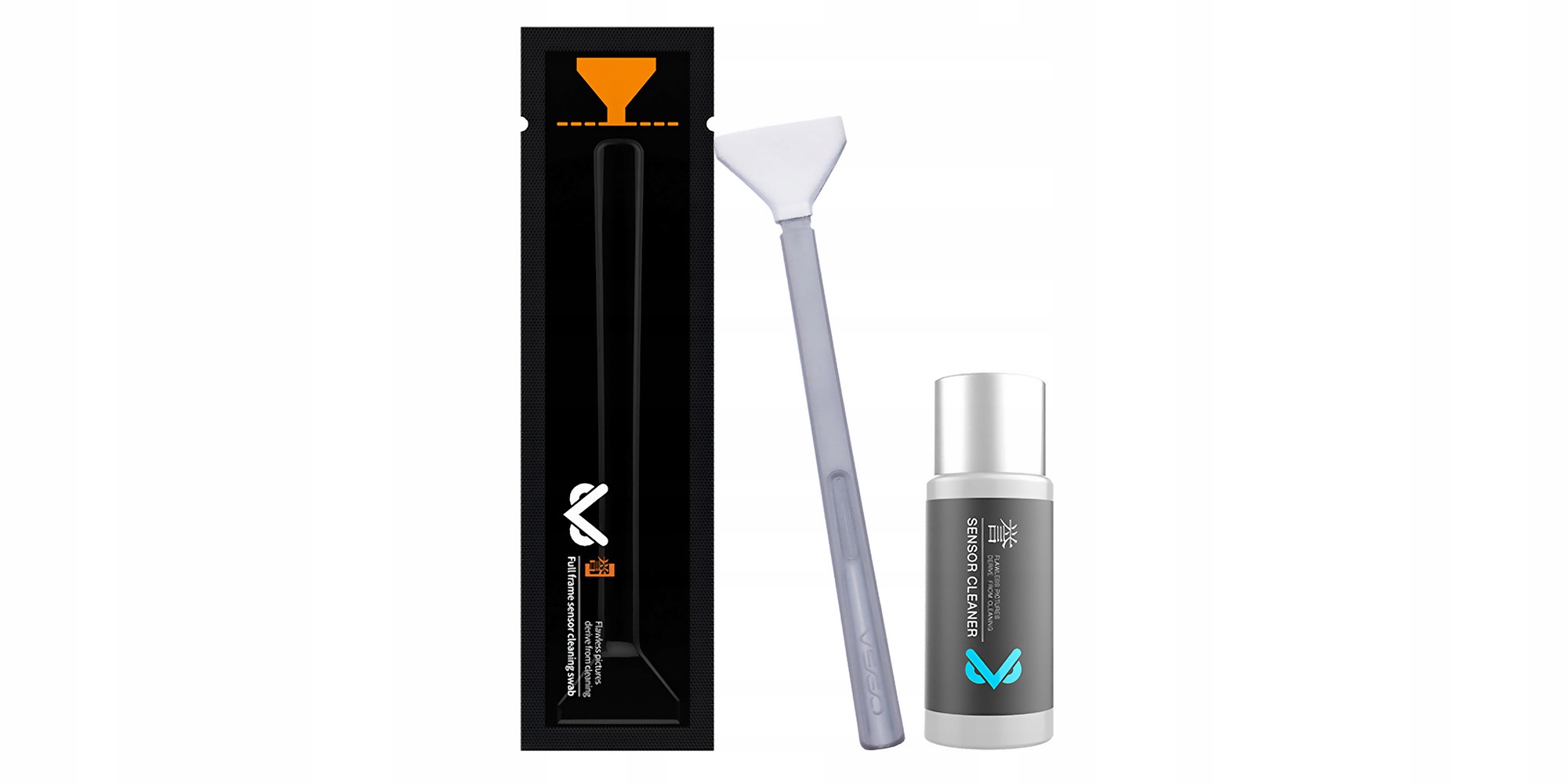 Набір для чищення VSGO VS-S03-E — це все, що вам потрібно, щоб самостійно безпечно очистити повнокадровий датчик камери. У коробці 12 гнучких і м'яких шпателів шириною 24 мм. Форма їх наконечників ідеально підігнана до розмірів повнокадрових матриць. Кожен шпатель був запакований під вакуумом. У набір також входить спеціальна очищувальна рідина. Аксесуари призначені як для матриць CCD, так і для CMOS.