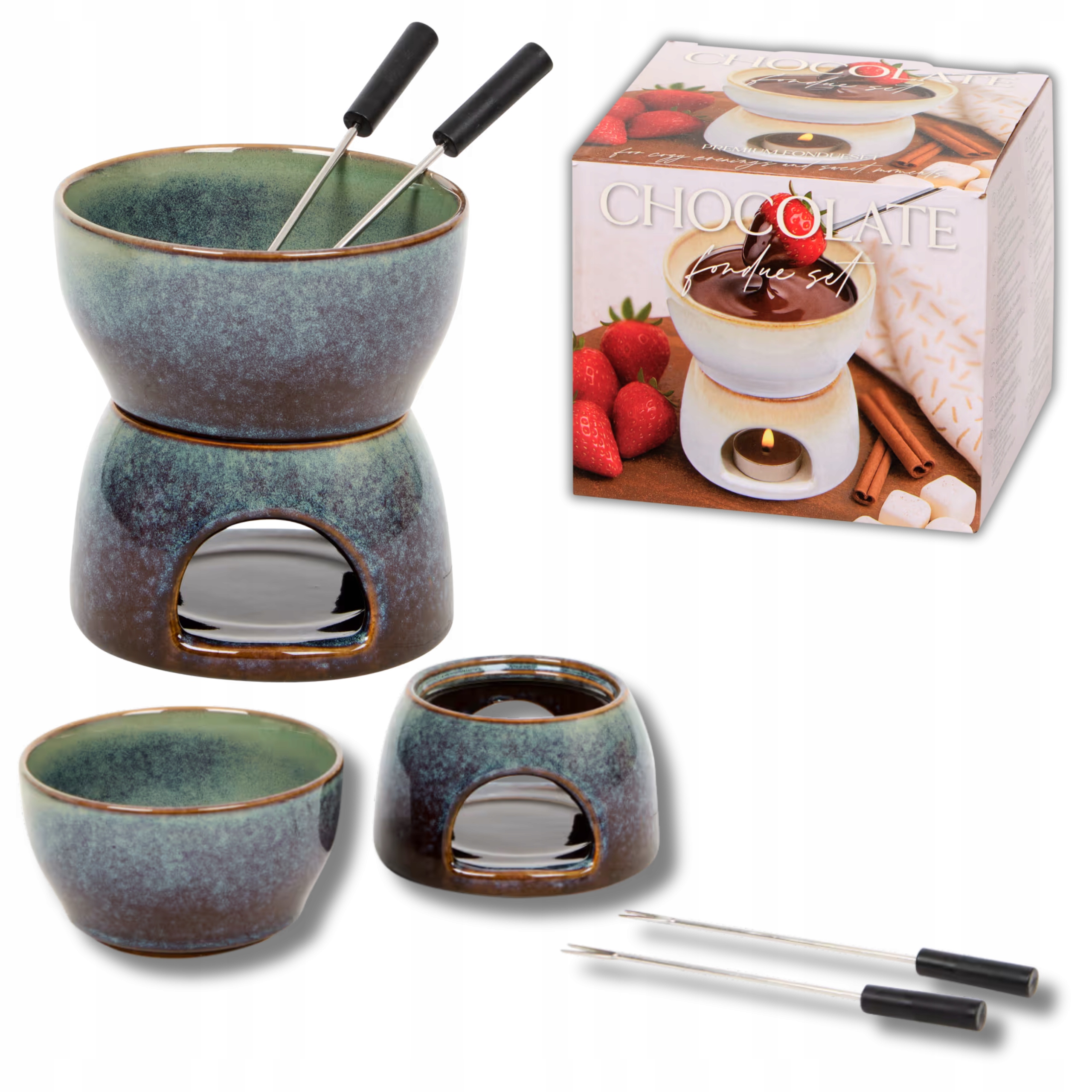 ZESTAW DO FONDUE CZEKOLADOWEGO CERAMICZNY 3-CZĘŚCIOWY Z WIDELCAMI
