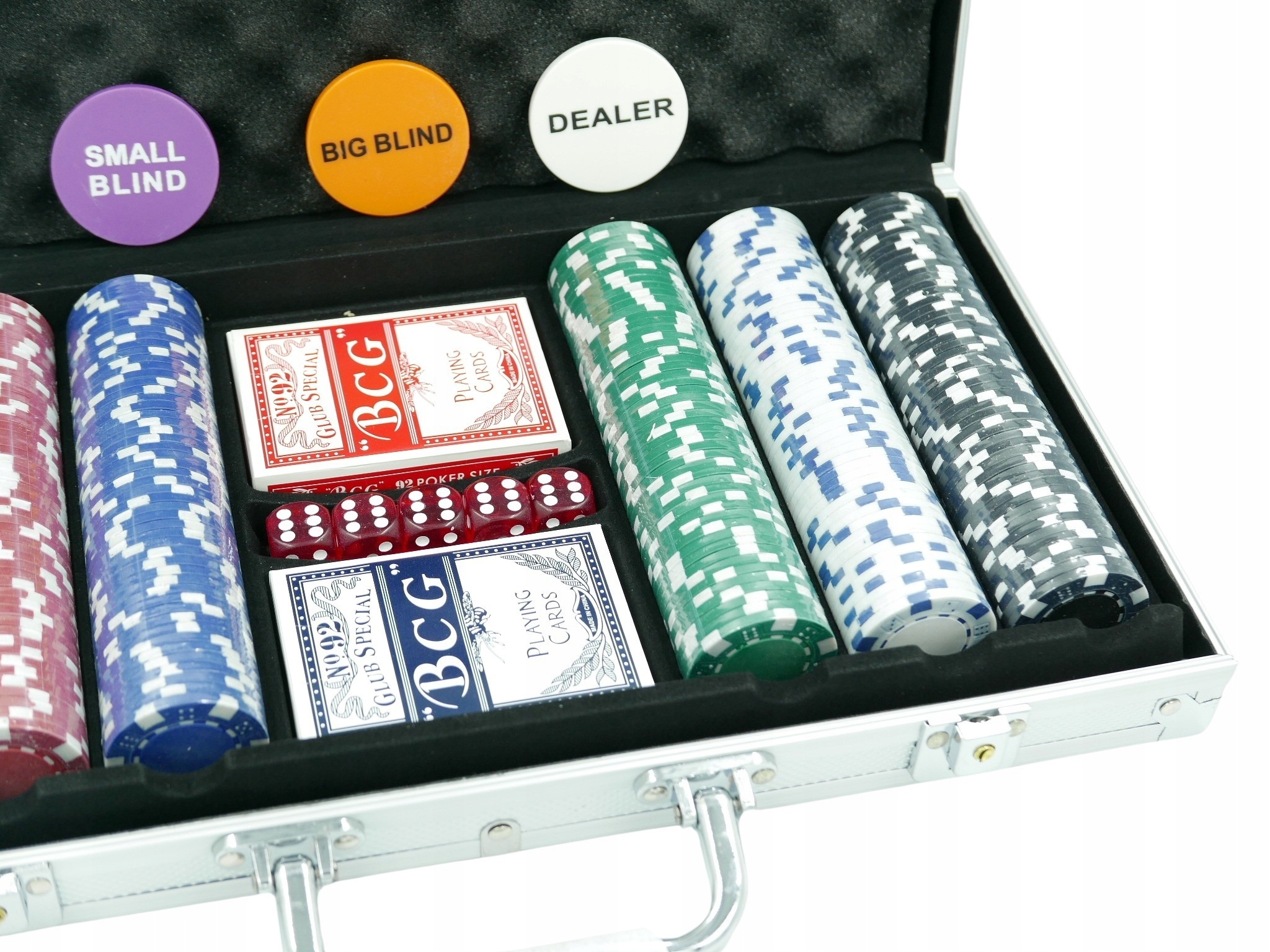 ZESTAW DO GRY W POKERA 300 ŻETONÓW 5x KOŚCI 2x KARTY WALIZKA CIĘŻKIE ŻETONY