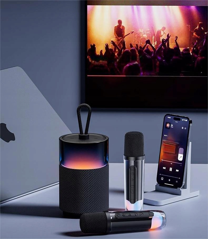 ZESTAW DO KARAOKE 2 MIKROFONY + GŁOŚNIK BEZPRZEWODOWY Z BLUETOOTH 1200mAh