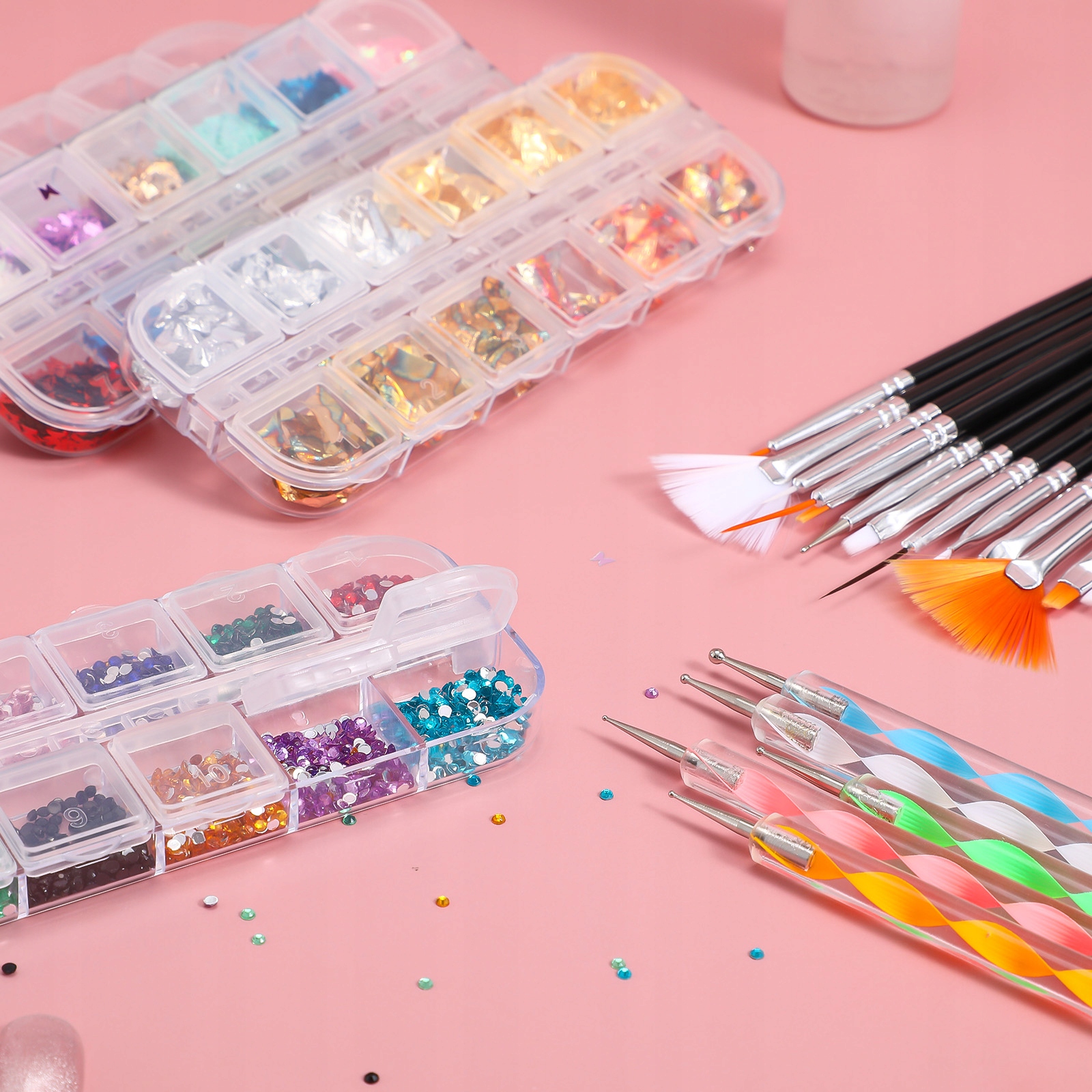 ZESTAW DO NAIL ART: PĘDZELKI NARZĘDZIA DO KROPKOWANIA GLITTER