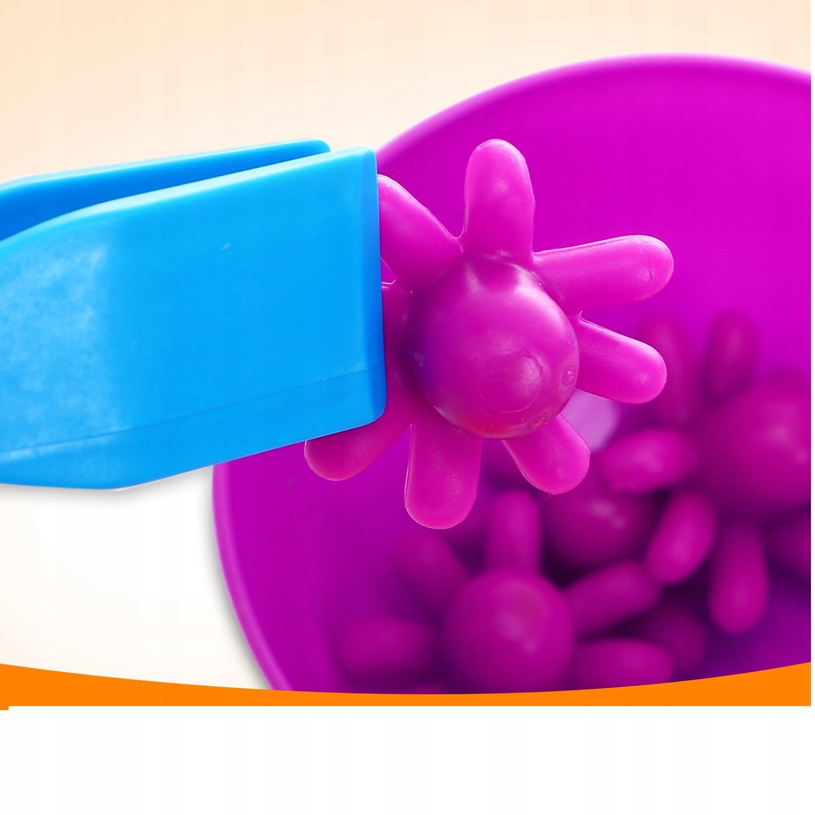 - Сортувальні миски та щипці для утримування покращують координацію рук і очей малюків, щипковий хват і дрібну моторику, важливі навички для дитячого садка.