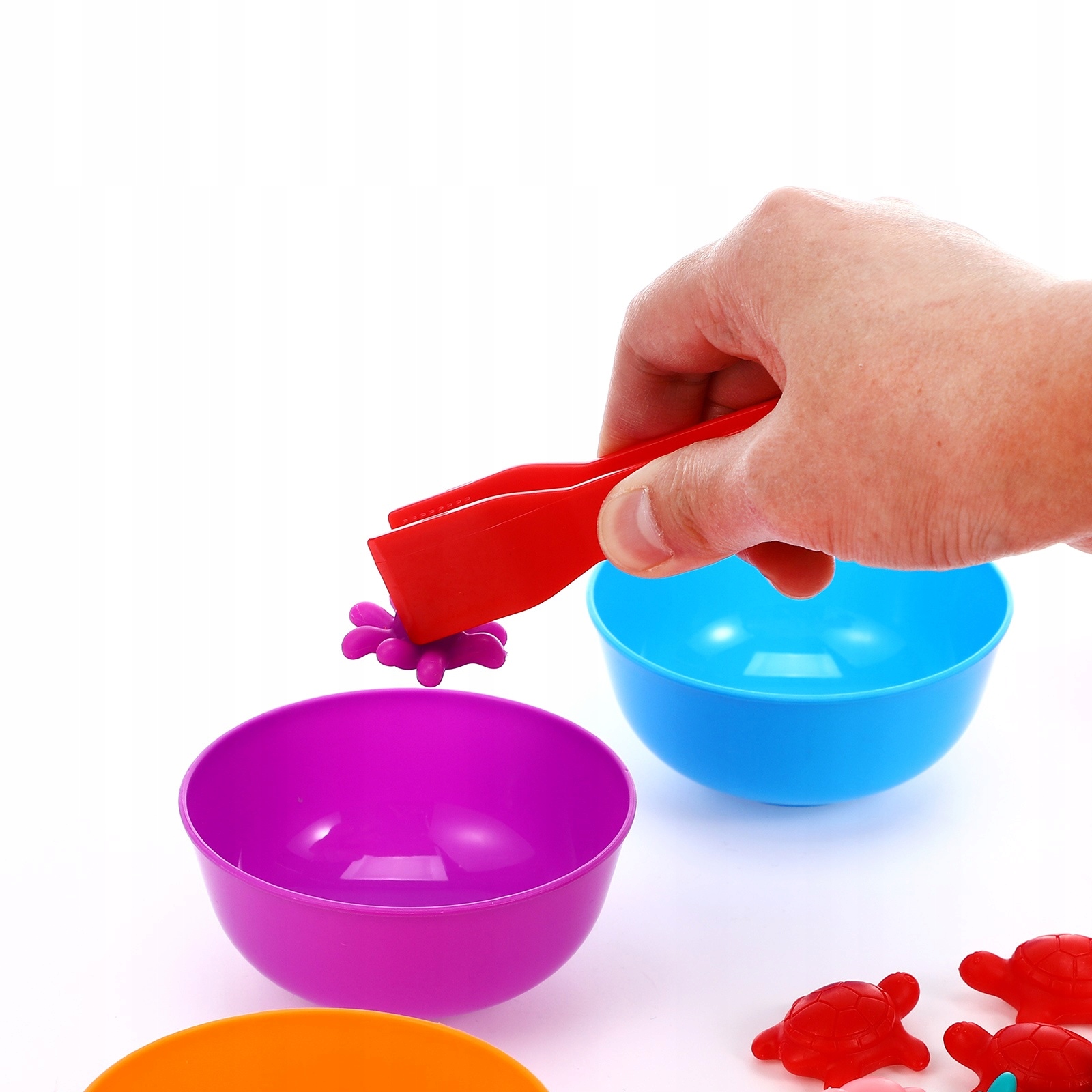 Насолоджуйтесь захоплюючою подорожжю сучасною наукою з нашим набором іграшок для сортування кольорів. Набори з насиченими морськими тваринами, десять наборів сприяють пізнавальному розвитку завдяки привабливим кольорам. Маленькі рученята опановуватимуть дрібну моторику, використовуючи щипці, щоб сортувати істот у знайомі миски, базові навички в веселій інтерактивній формі.