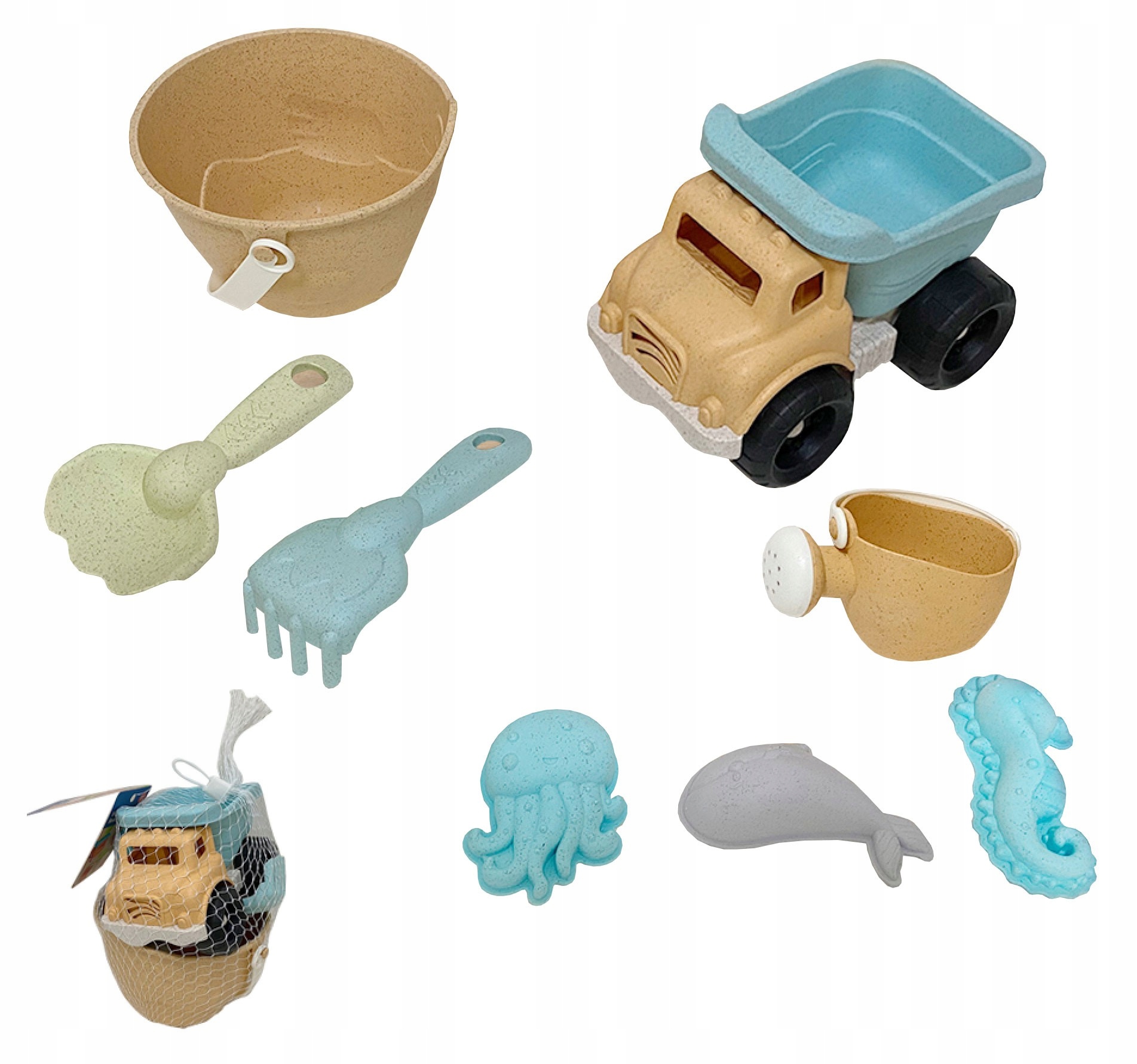ZESTAW DO PIASKU PIASKOWNICY WIADERKO FOREMKI ŁOPATKA KONEWKA 8 el. WOOPIE