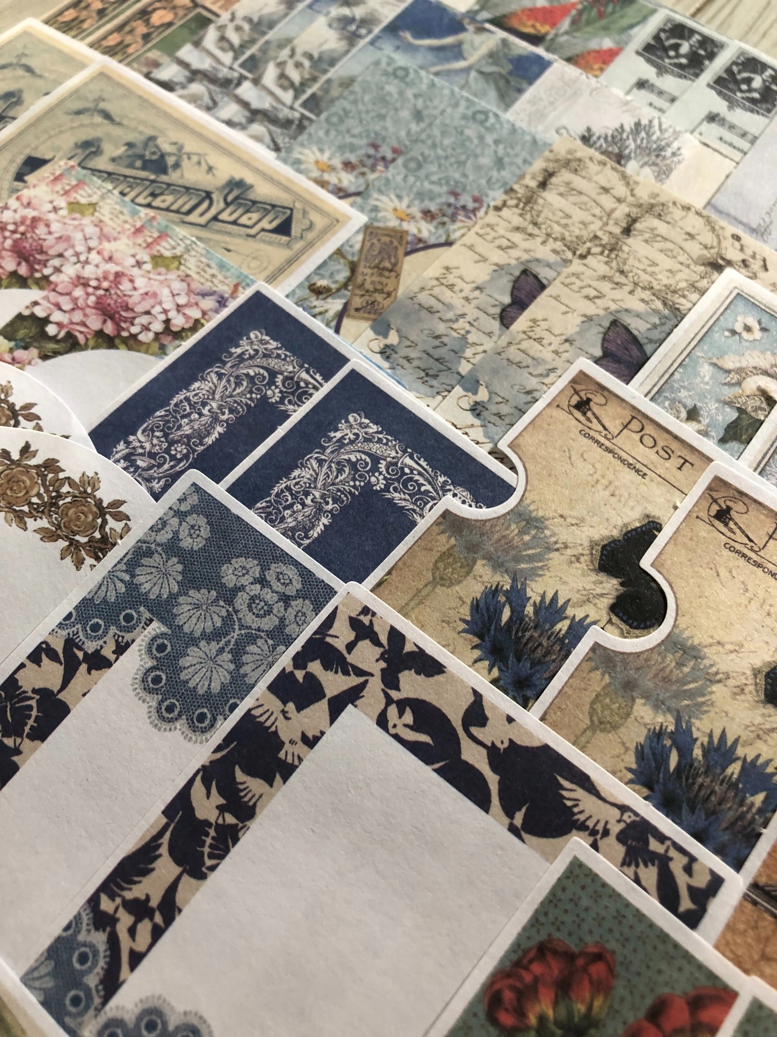 120 штук декоративного паперу різних розмірів без клею (60 малюнків, по два)