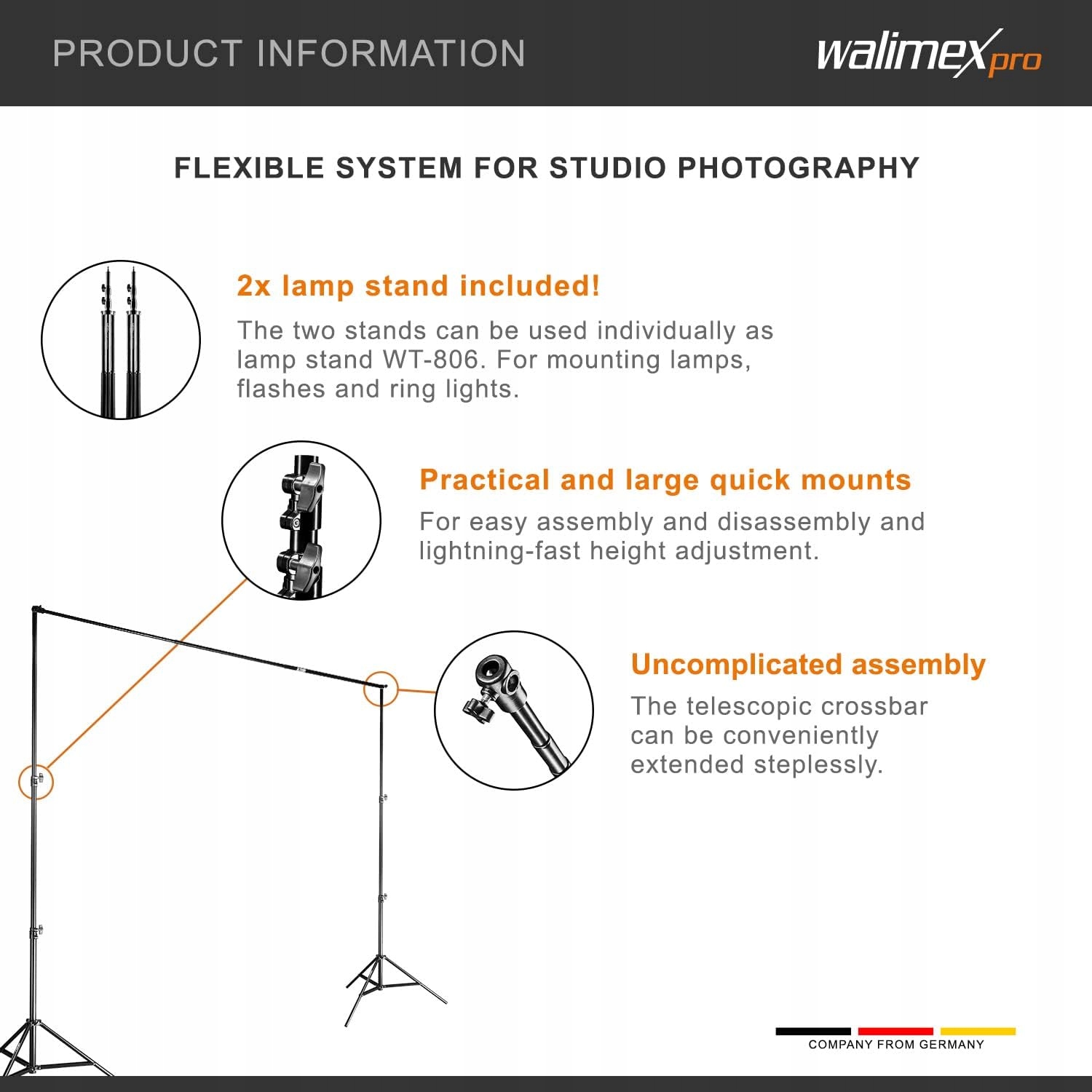 Просматривая «Zestaw do tła Walimex Pro 225-400 cm», вы можете быть уверены, что данный товар из каталога «[rubrica_name]» будет доставлен из Польши и проверен на целостность. В цене товара, указанной на сайте, учтена доставка из Польши. Внимание!!! Товары для Евросоюза, согласно законодательству стран Евросоюза, могут отличаться упаковкой или наполнением.