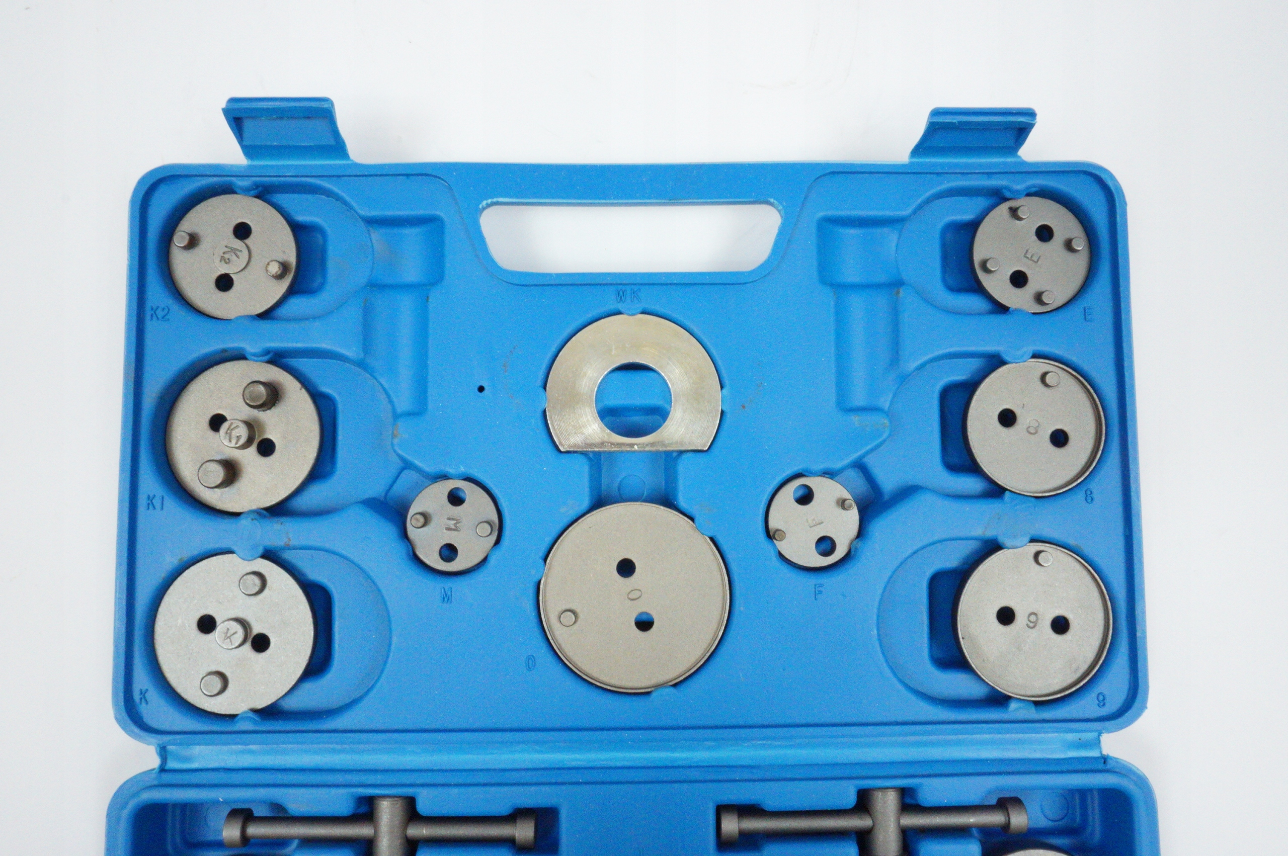 Набір загартовані сепаратори для гальмівних супортів з ручним приводом, він адаптований для роботи супортів, що вставляються (передні гальма) і супортів, що вкручуються (задні гальма). Набір включає 22 елементи, адаптовані до розміру гальмівних поршнів, які використовуються в таких марках автомобілів, як: Audi, Fiat, Ford, Isuzu, Handa, Jaguar, BMW, Mercedes Benz, Mitsubishi, Nissan, Toyota, Renault, Volvo, Citroen, Opel, SAAB , GM і VW