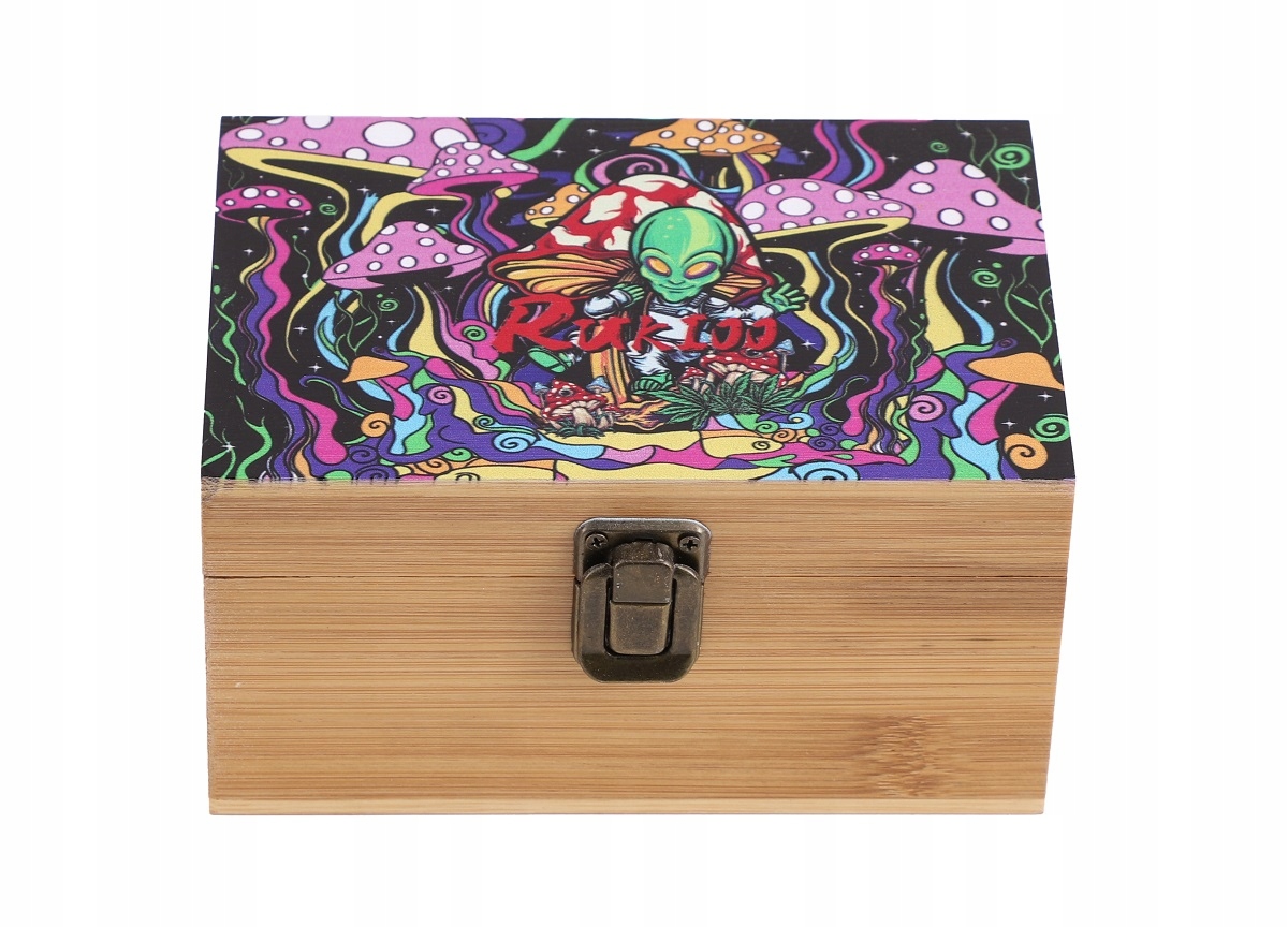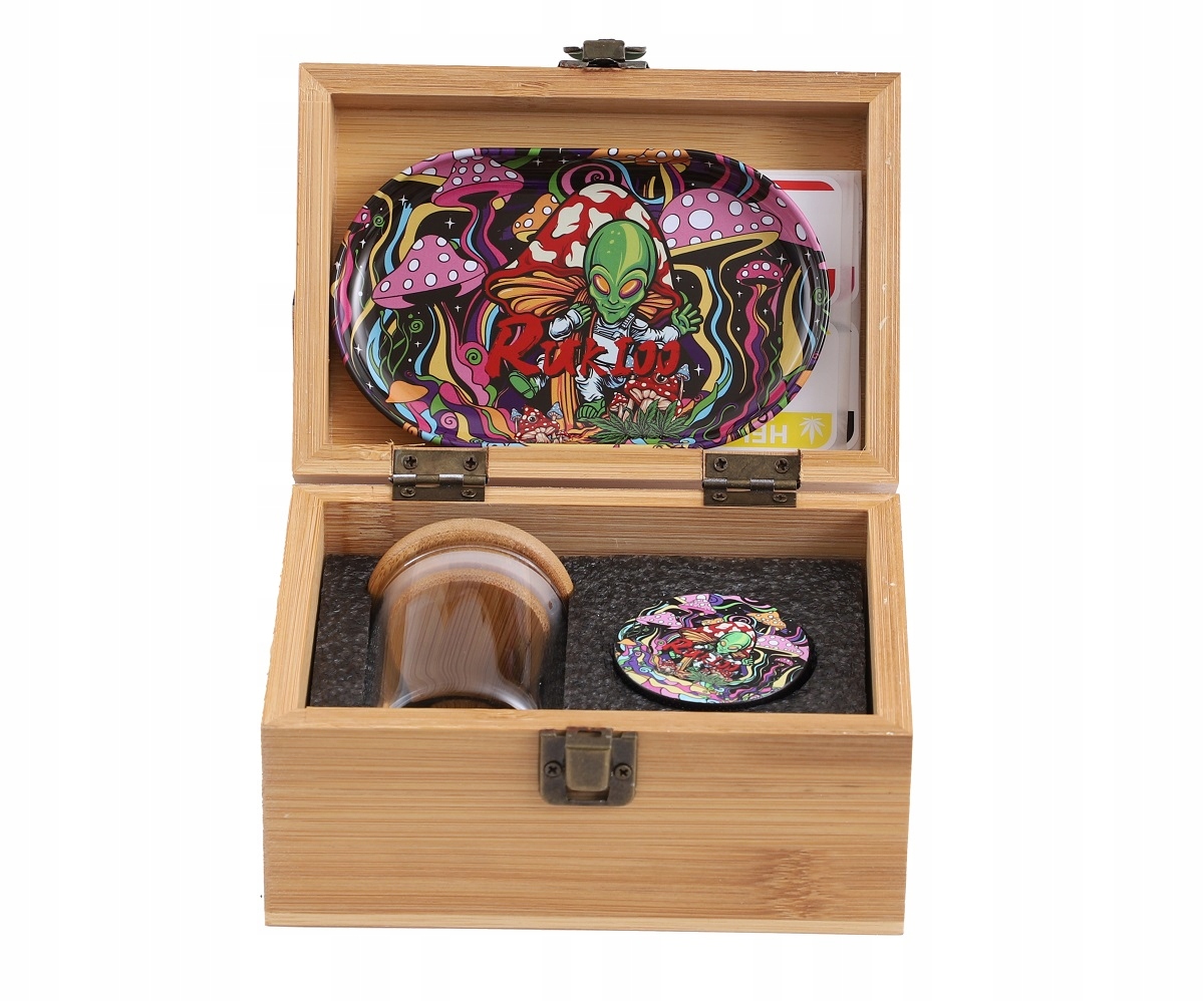 Zestaw Drewniany BOX - Mushroom - tacka, młynek, słoiczek, naklejki