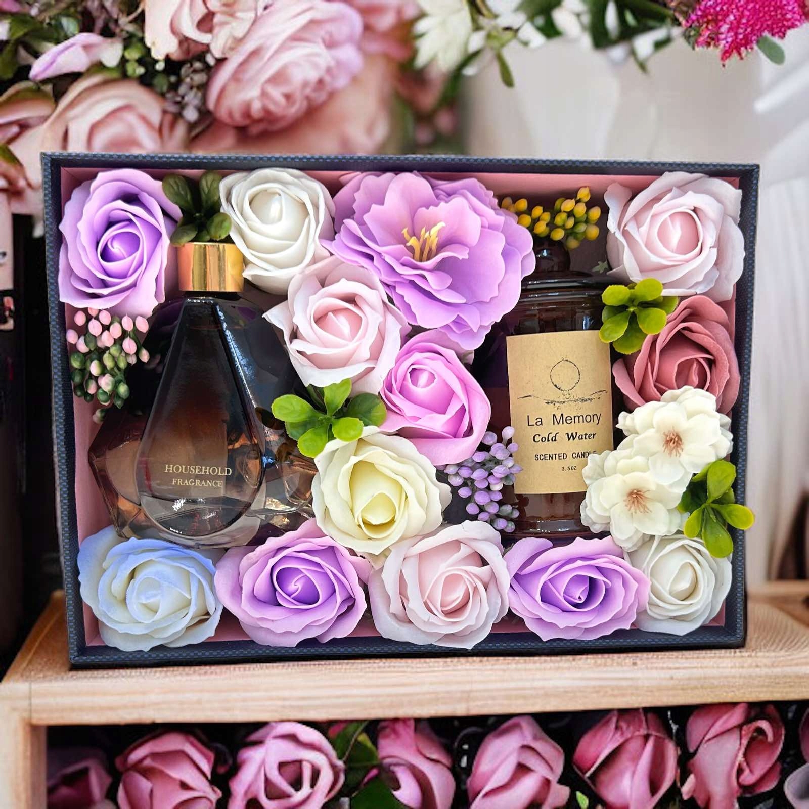 Подарунок у вигляді квіткової коробки з композицією з мильних квітів, свічки та ароматів, ідеально підходить до Дня святого Валентина День, Жіночий день, День Матері, День Бабусі, День Дідуся, День Батька, Різдвяний подарунок, подарунок, як альтернатива живим квітам.
