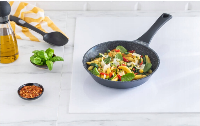 Наші сковороди можна використовувати на всіх типах плит , у тому числі на індукційних плитах. Крім того, використовуваний повноіндукційний диск завдяки повній магнітній провідності забезпечує краще використання енергії до 40%. Використане антипригарне покриття дозволяє смажити з мінімальним вмістом жиру або взагалі без нього, що, безсумнівно, означає здоровий спосіб життя.