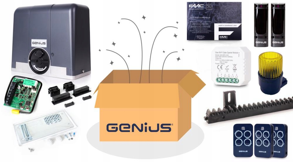 - Повний і готовий до монтажу комплект GENIUS BLIZZARD 500 призначений для відкатних воріт вагою не більше 500 кг. ul>