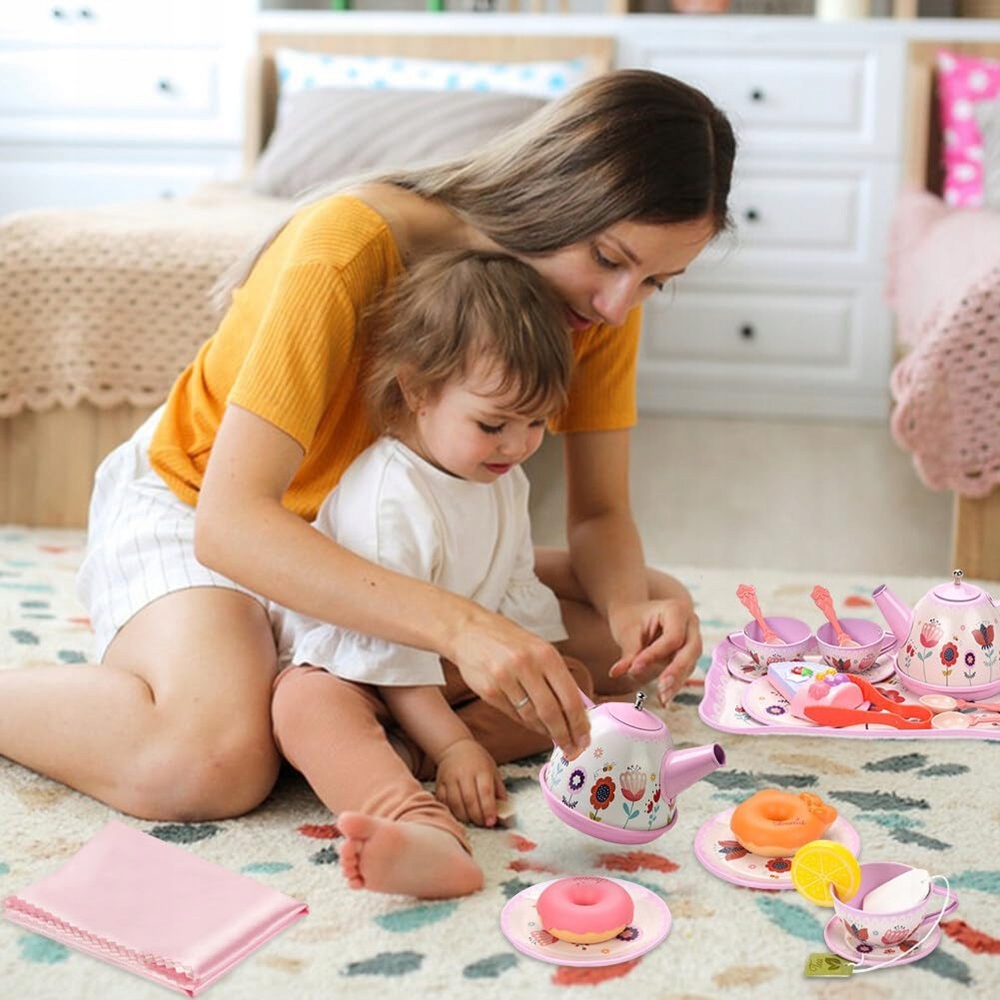 ZESTAW HERBATY DLA DZIECI 46 ELEMENTÓW Z AKCESORIAMI DO KUCHNI I DESERAMI
