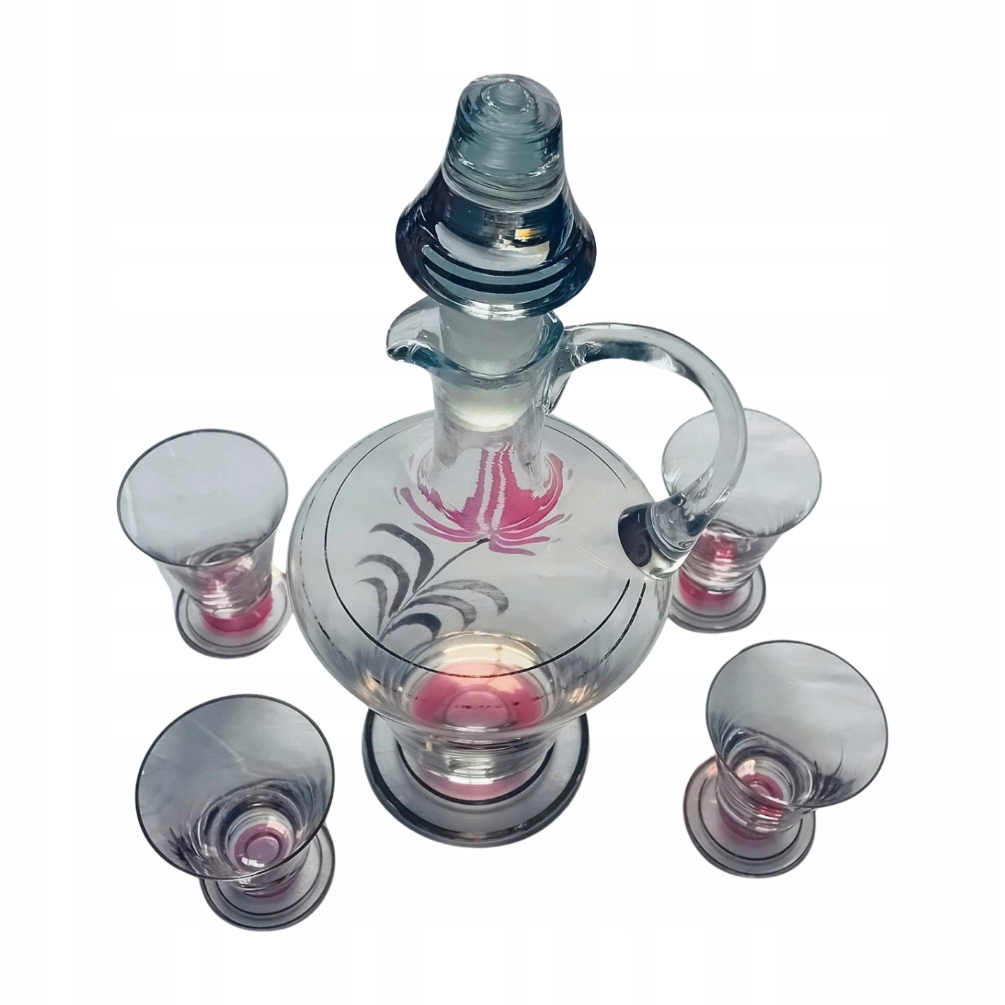 Zestaw karafka i 4 kieliszki, ręcznie malowane. Bohemia, połowa XX w.