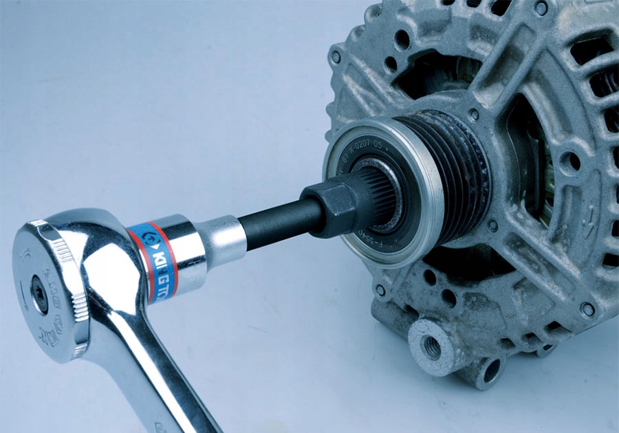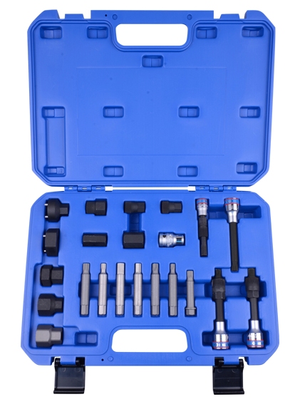 Професійний набір гайкових ключів для встановлення та зняття шківів на генераторах. Набір призначений для пристроїв BOSCH, VALEO, MAGNETI MARELLI і DENSO, які є в більшості автомобілів на європейському ринку. Все це вкладено в пластикову валізу для зручного транспортування та зберігання.