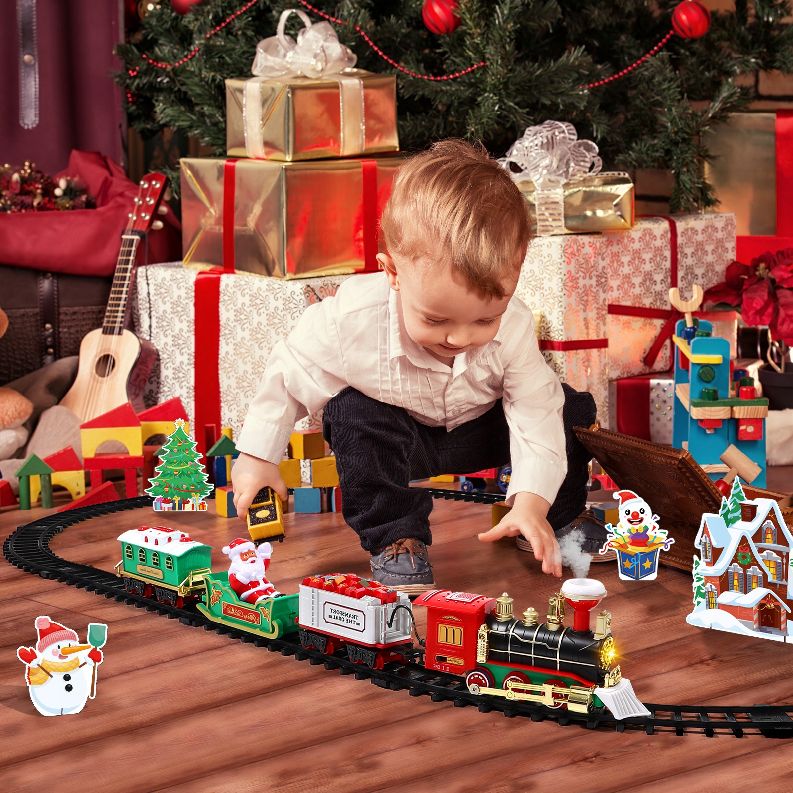 🎄- Креативно та весело. Різдвяний потяг оснащений фарами, тяговими потягами, гудками та свистками, коли він їде вздовж залізничних коліїв.