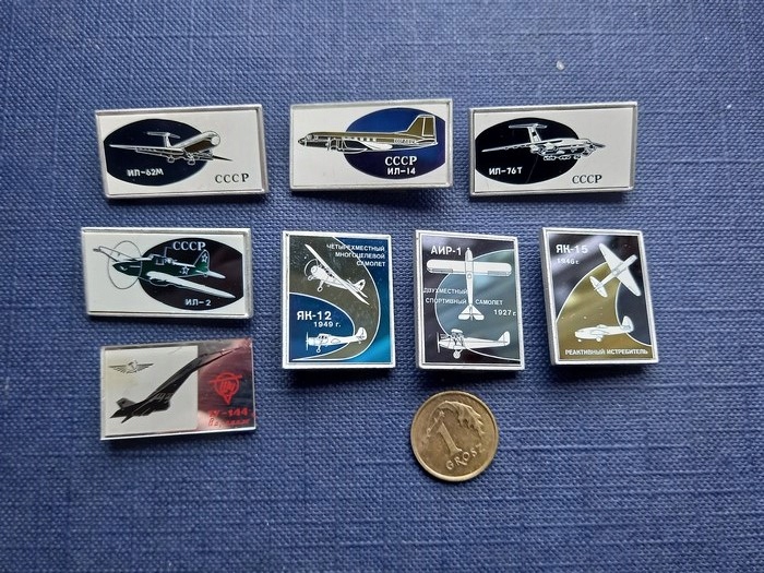 Zestaw kolekcjonerskich przypinek ZSRR samoloty 8 sztuk