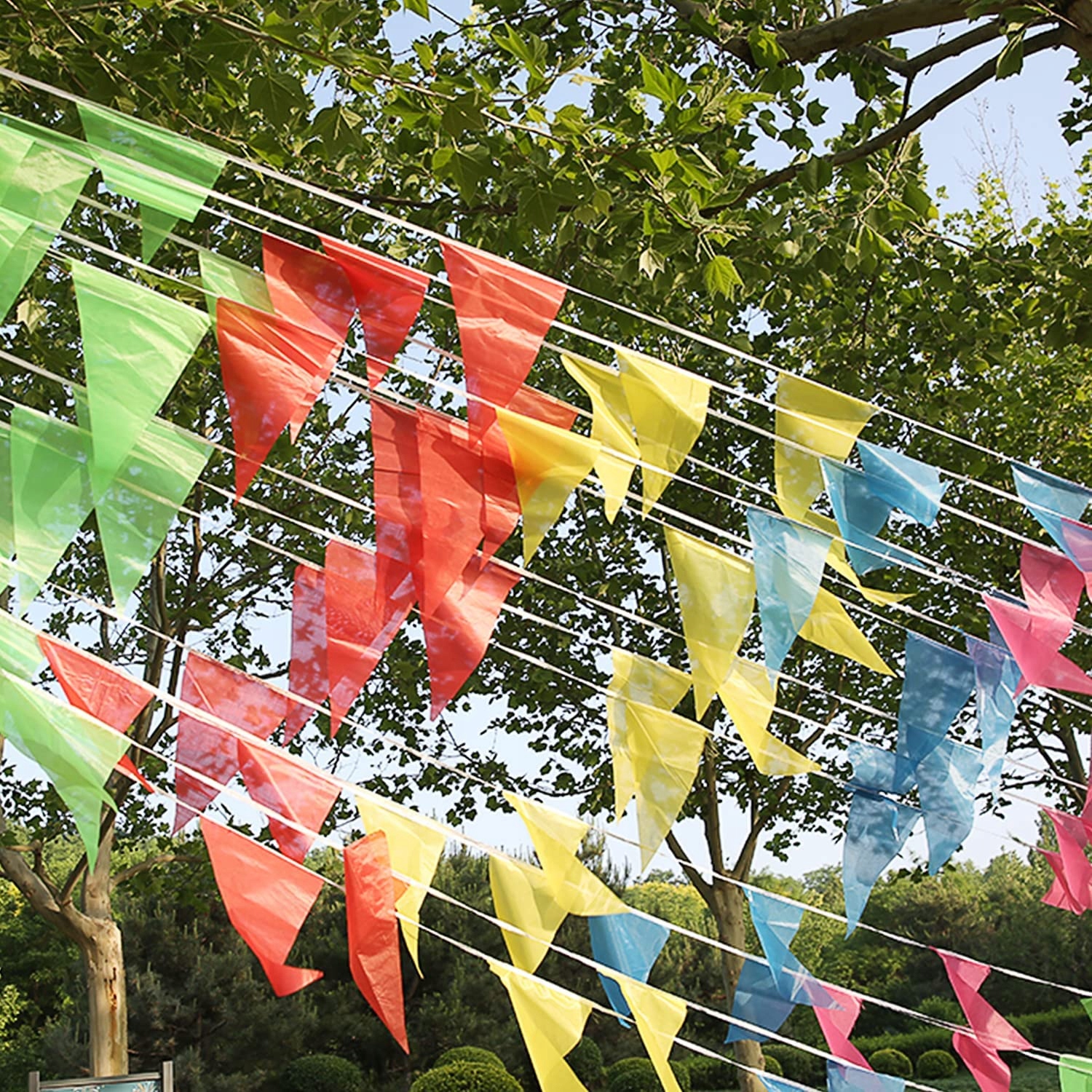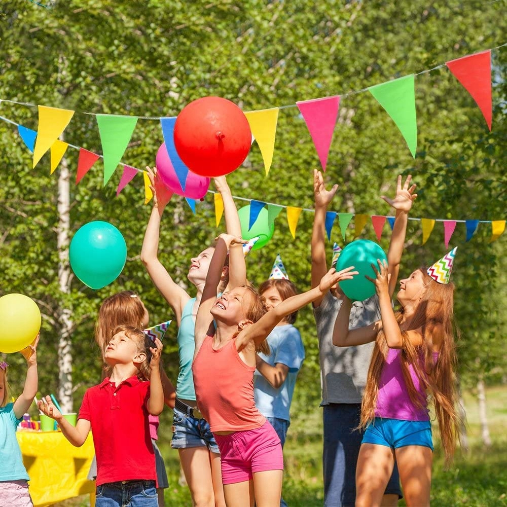 ⭐️Велика довжина: Набір включає до 100 метрів прапорів, що дозволяє прикрасити великі простори. Він ідеально підходить для оформлення садів, банкетних залів, святкових наметів та багатьох інших місць, створюючи послідовний і барвистий декор.
